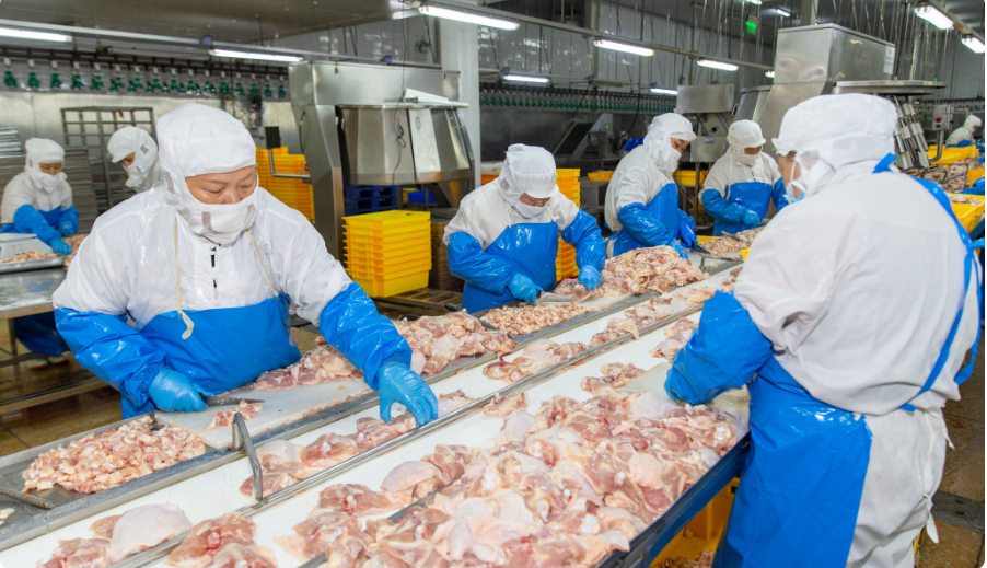 7月25日,记者走进正大食品遂宁有限公司生产车间看到,工人们正熟练地分割、包装鸡肉,一派忙碌景象。