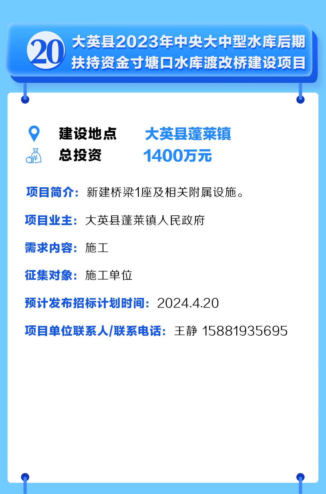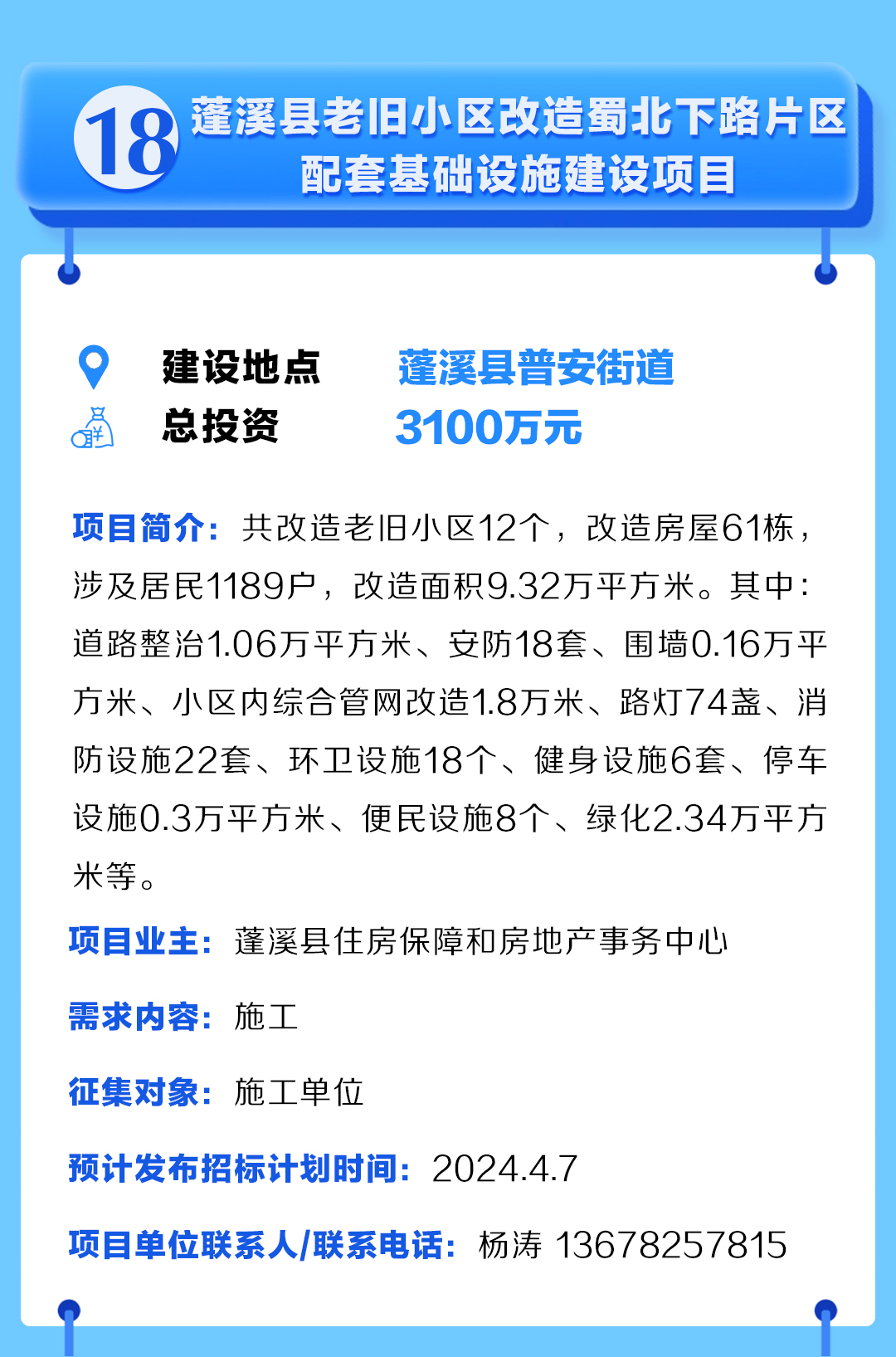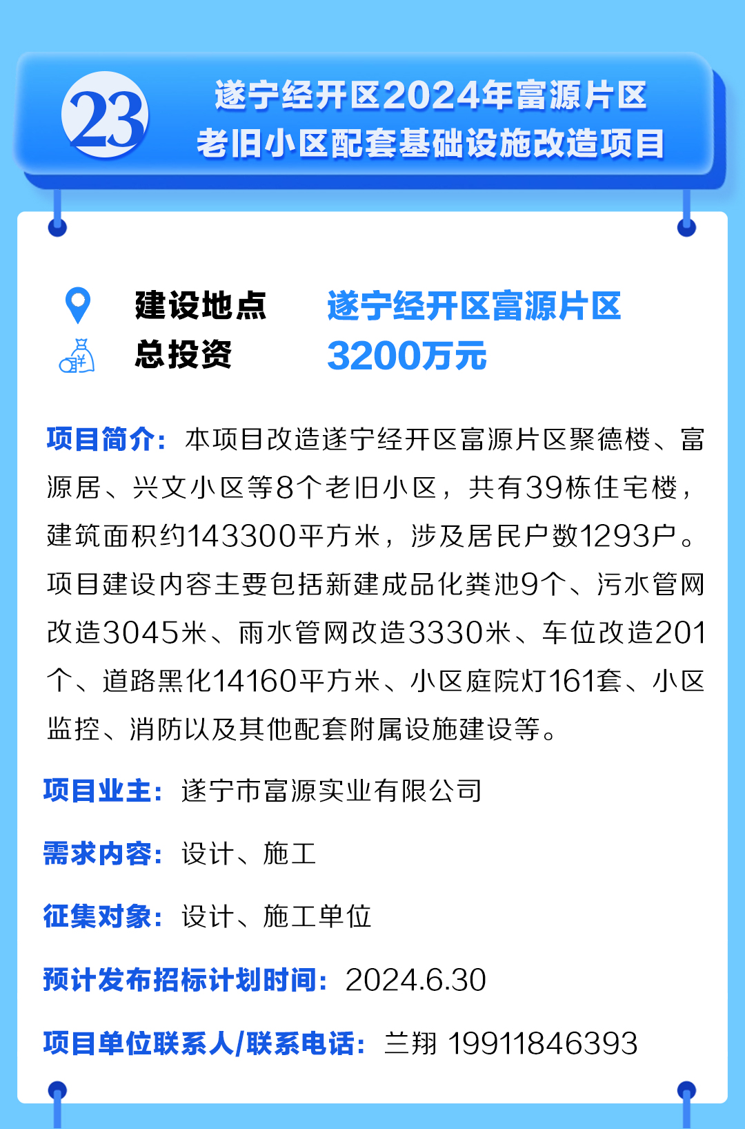 本批发布投资项目服务需求信息共计29条、项目计划总投资28.85亿元。其中国家重大工程和补短板领域项目27条、总投资25.04亿元,重点产业链供应链领域项目1条、总投资2.12亿元,完全使用者付费的特许经营领域项目1条、总投资1.69亿元。诚邀有意者广泛参与。
