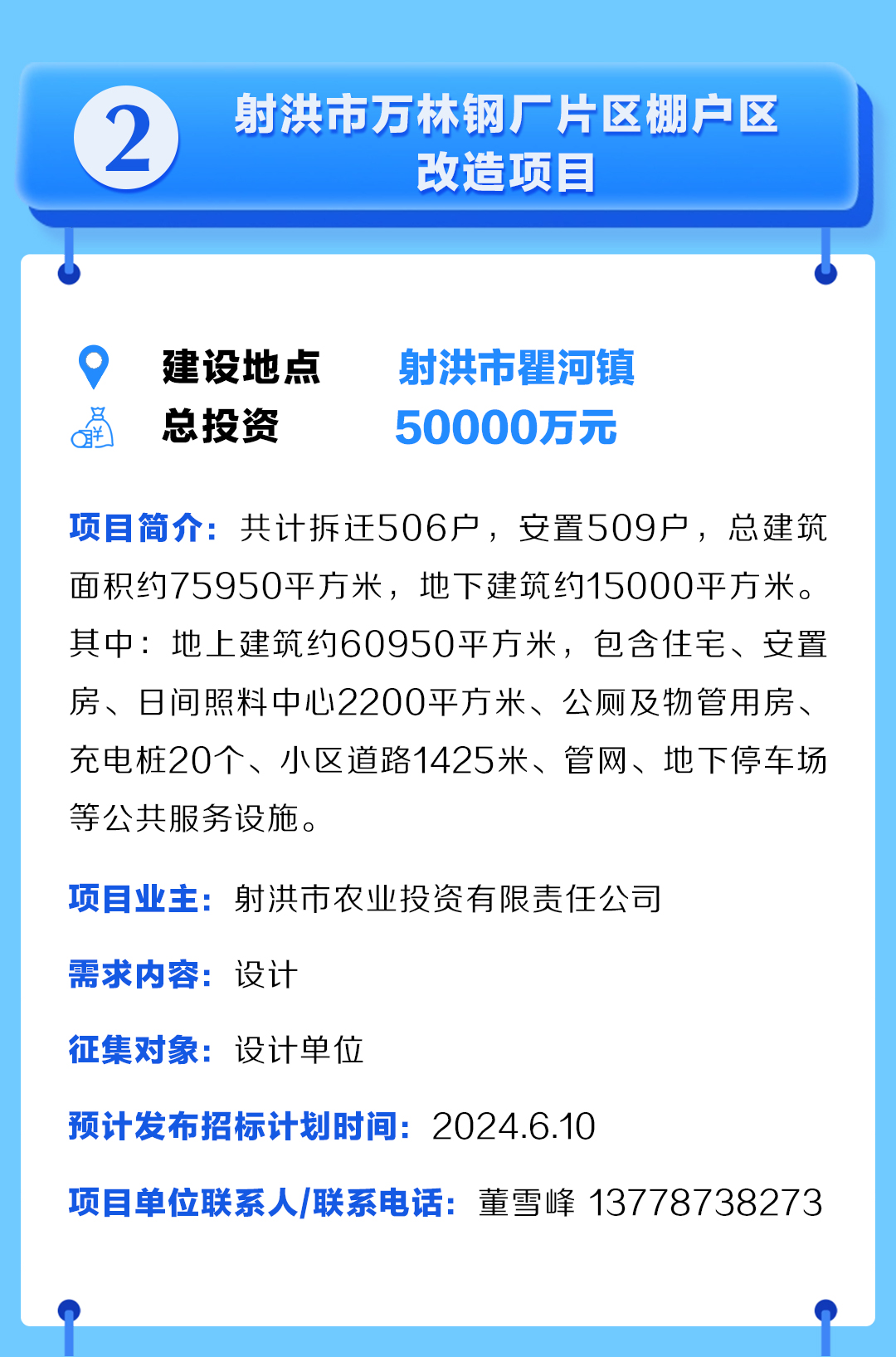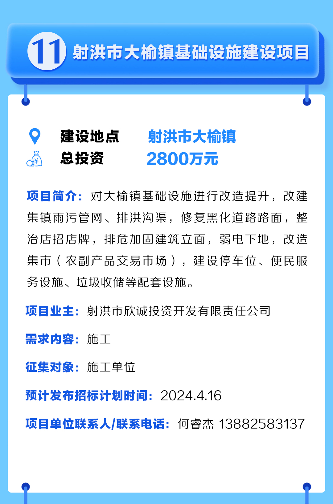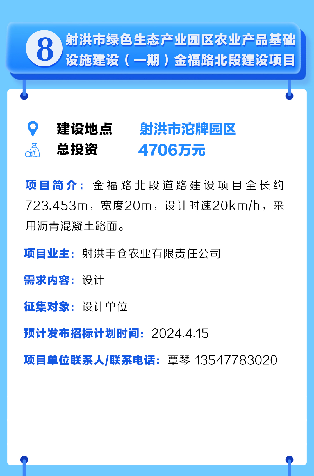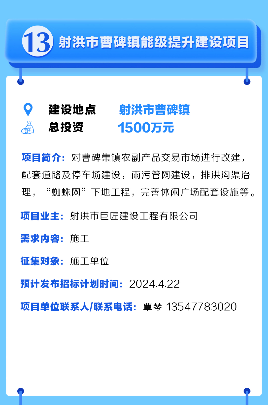 本批发布投资项目服务需求信息共计29条、项目计划总投资28.85亿元。其中国家重大工程和补短板领域项目27条、总投资25.04亿元,重点产业链供应链领域项目1条、总投资2.12亿元,完全使用者付费的特许经营领域项目1条、总投资1.69亿元。诚邀有意者广泛参与。