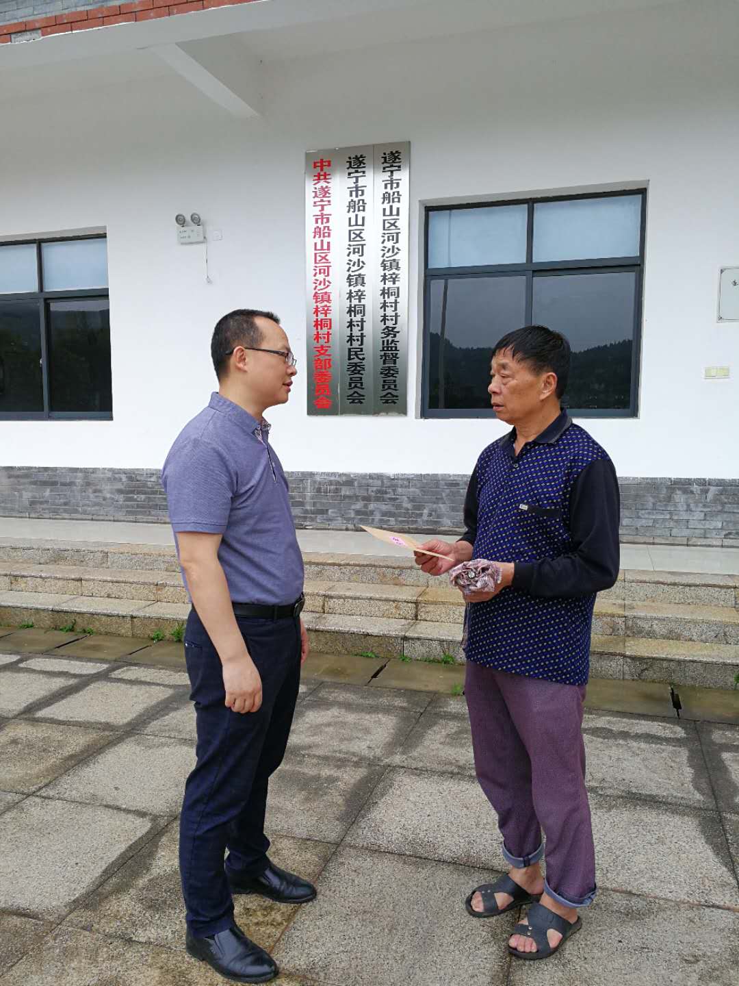 市经合局副主任刘仁军同志带队到船山区河沙镇梓桐村开展“七一”党员慰问活动