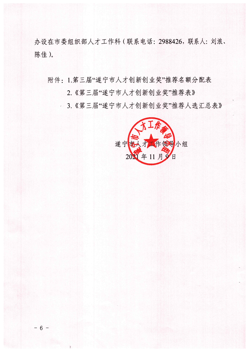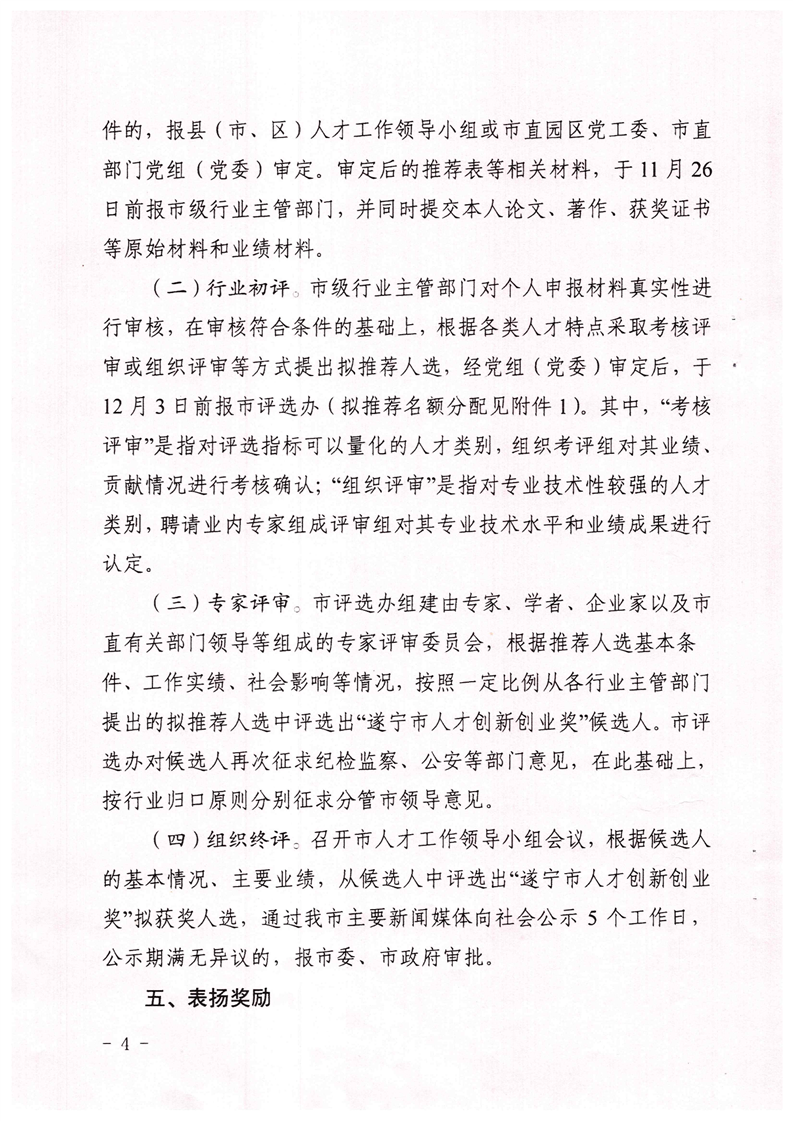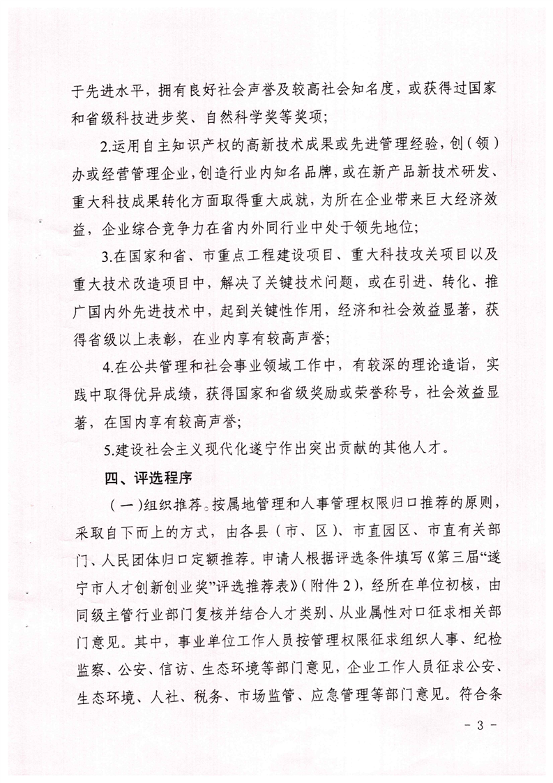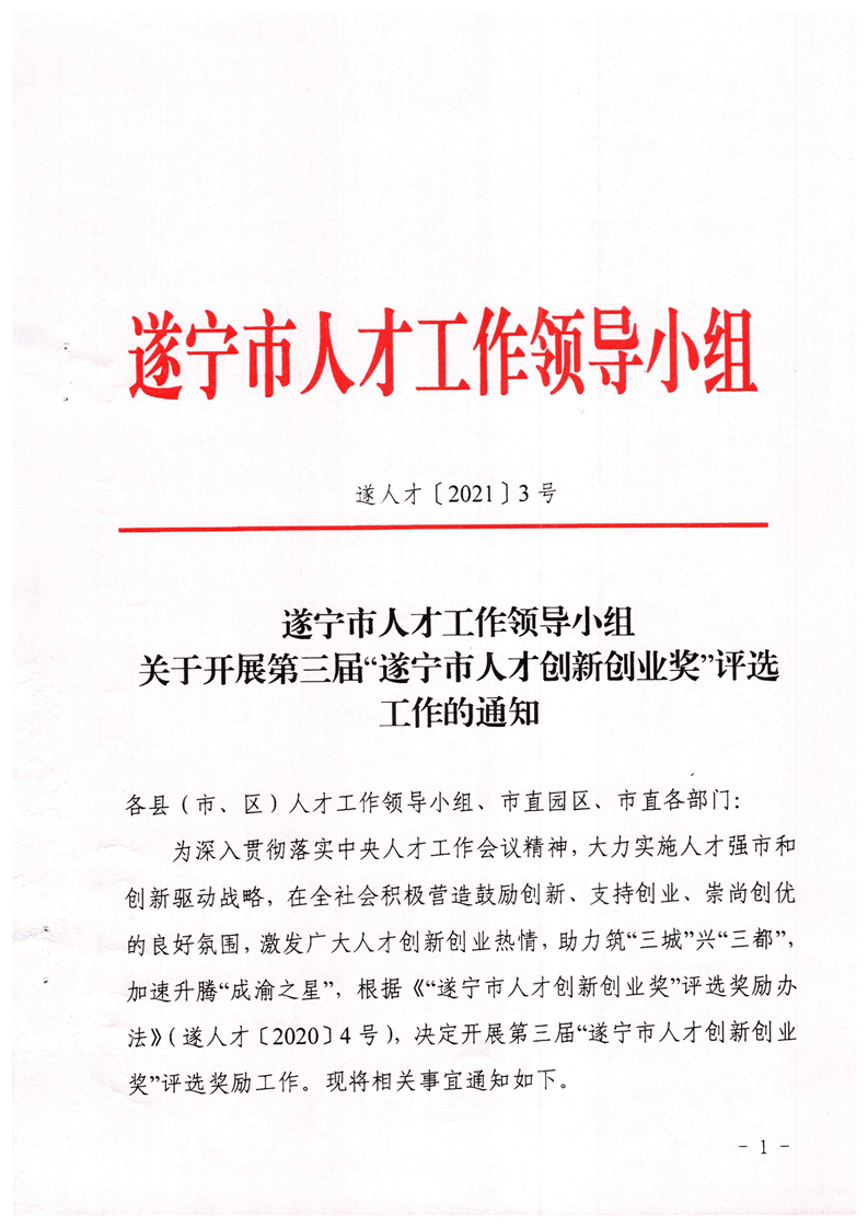 遂宁市人才工作领导小组关于开展第三届“遂宁市人才创新创业奖”评选工作的通知