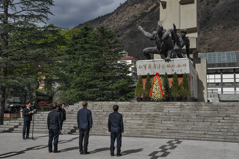 4月5日,黄强向红军飞夺泸定桥纪念碑敬献花篮、行三鞠躬礼,表达对革命先烈的缅怀和敬仰。