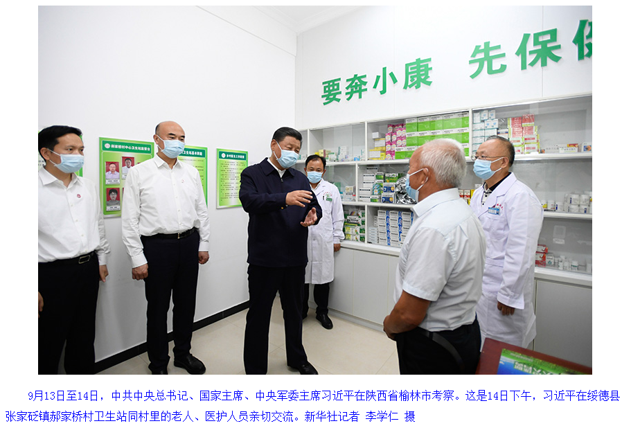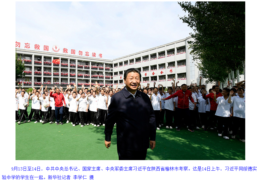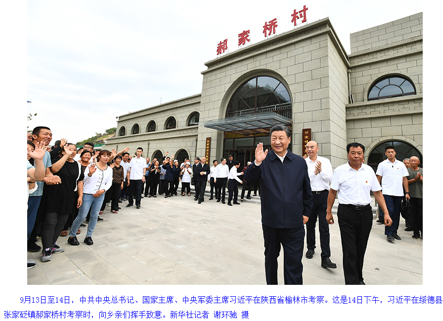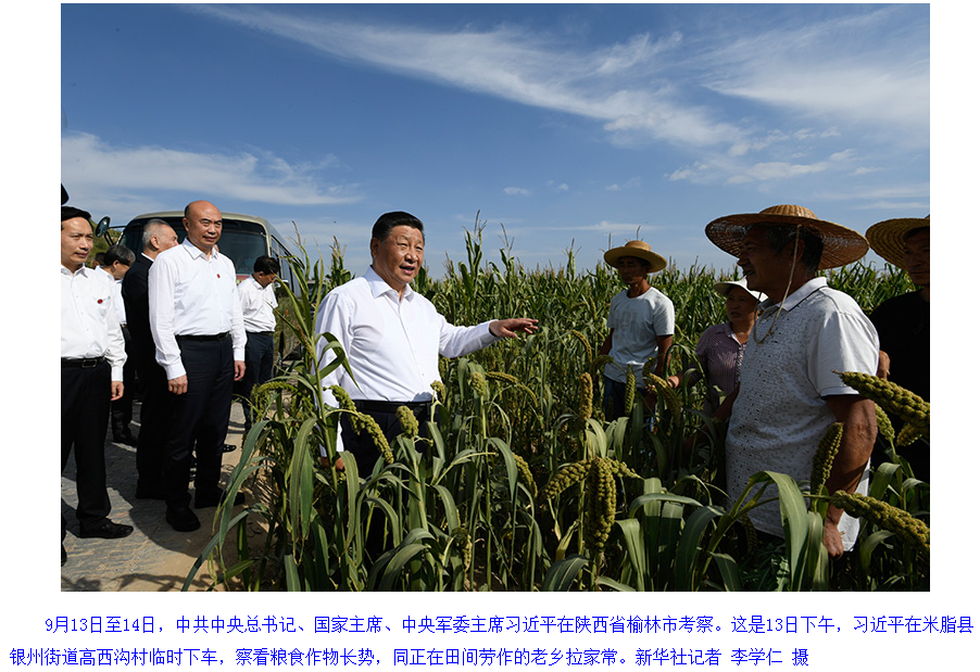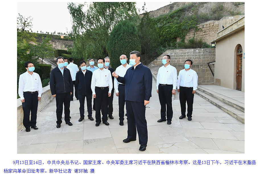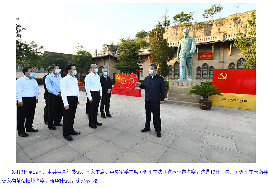 9月13日至14日,习近平在陕西省委书记刘国中、省长赵一德陪同下,深入企业、农村、学校、革命旧址等进行调研。
