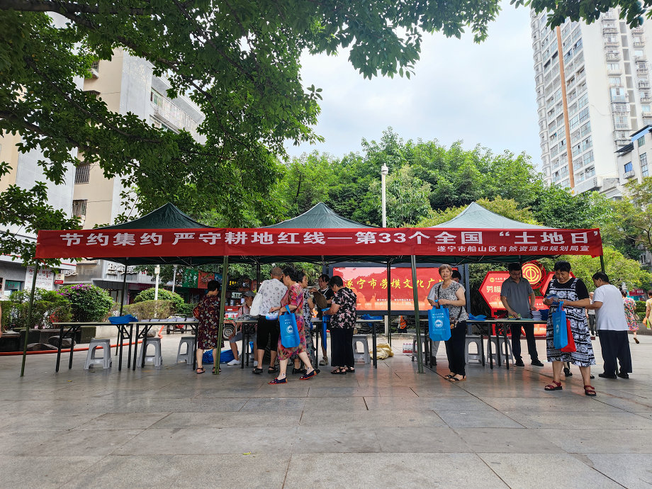 6月25日,船山区自然资源和规划局在裕丰园广场开展第33个全国土地日活动,活动围绕“节约集约 严守耕地红线”主题开展。