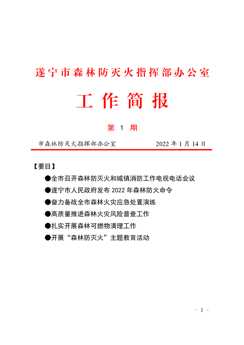 遂宁市森林防灭火指挥部办公室工作简报第1期