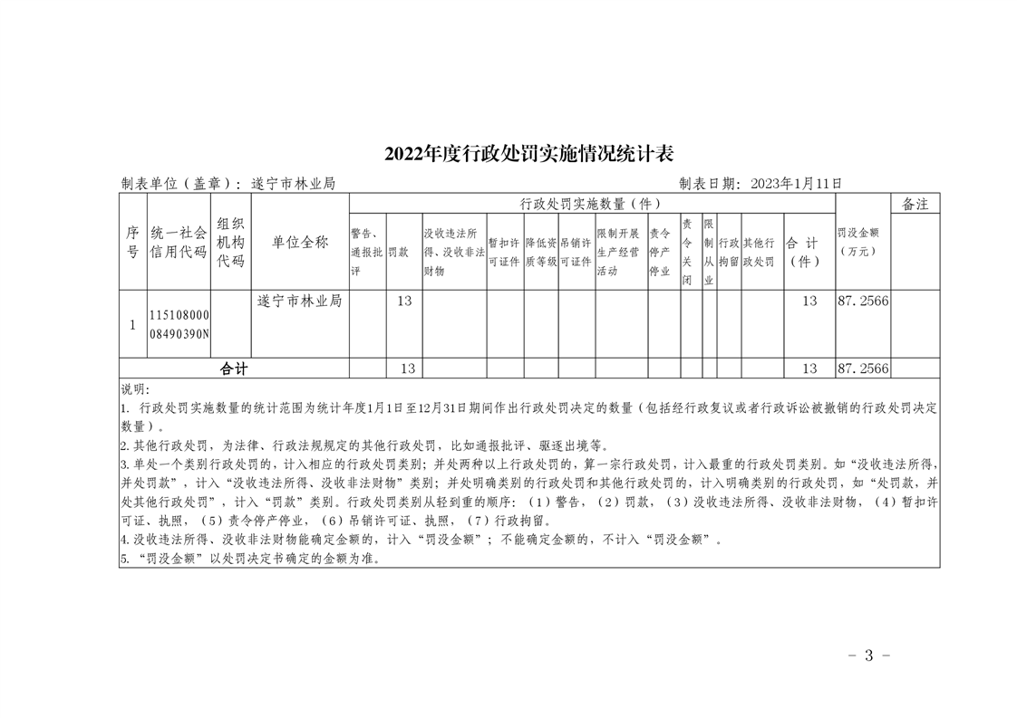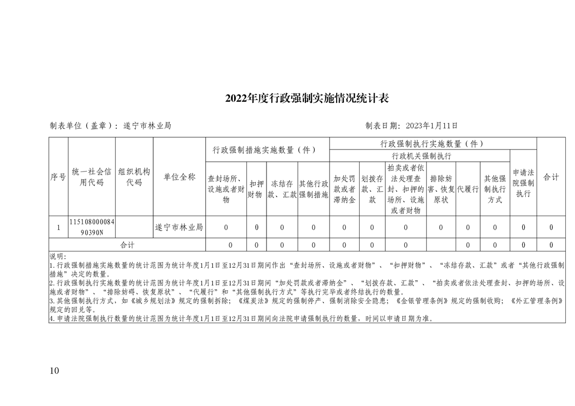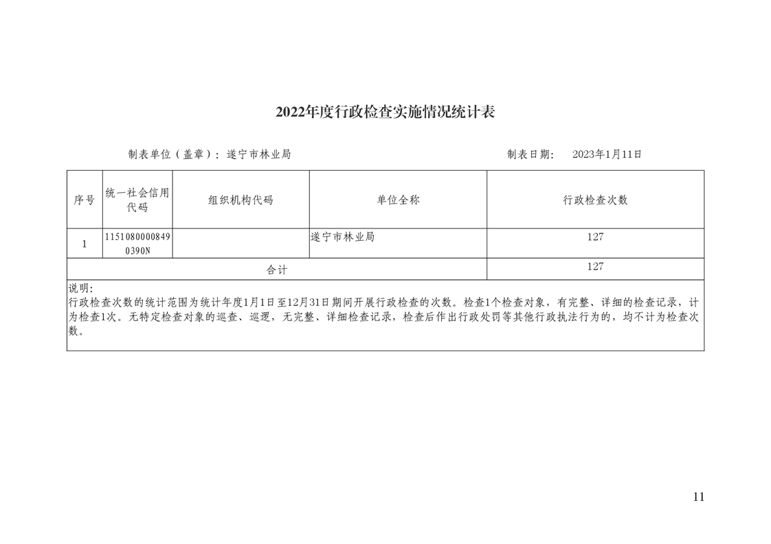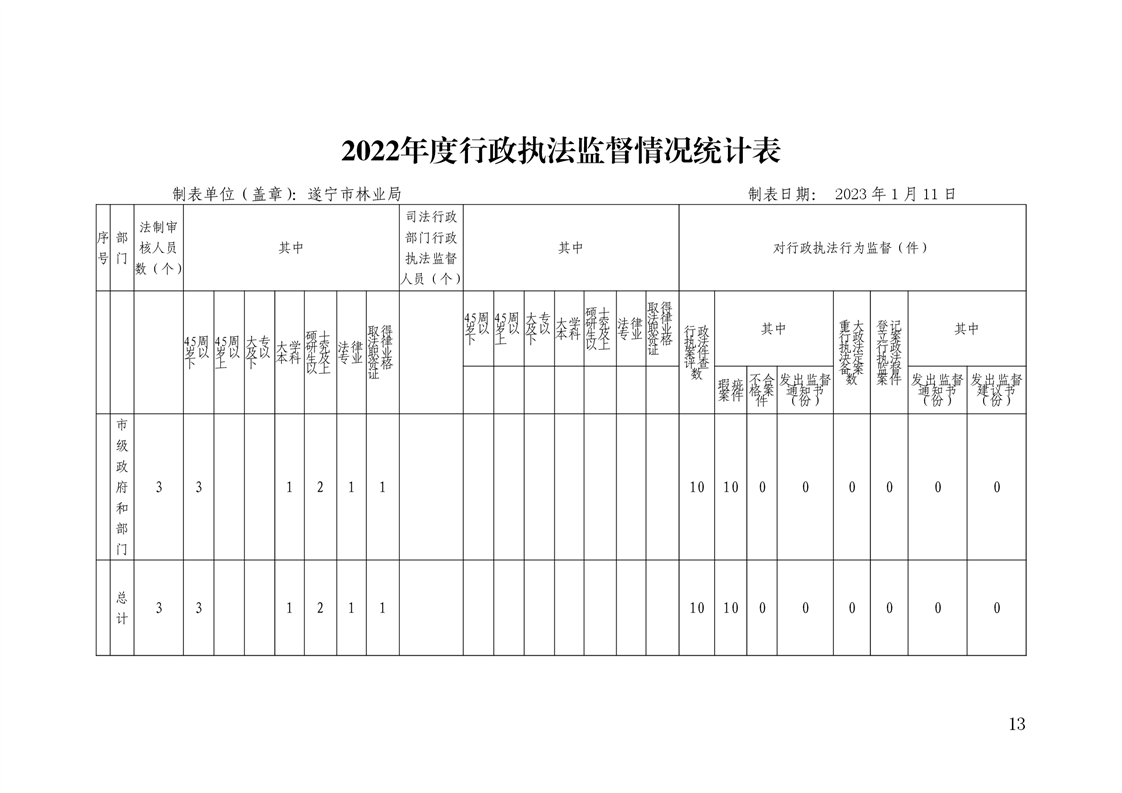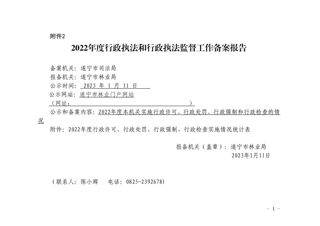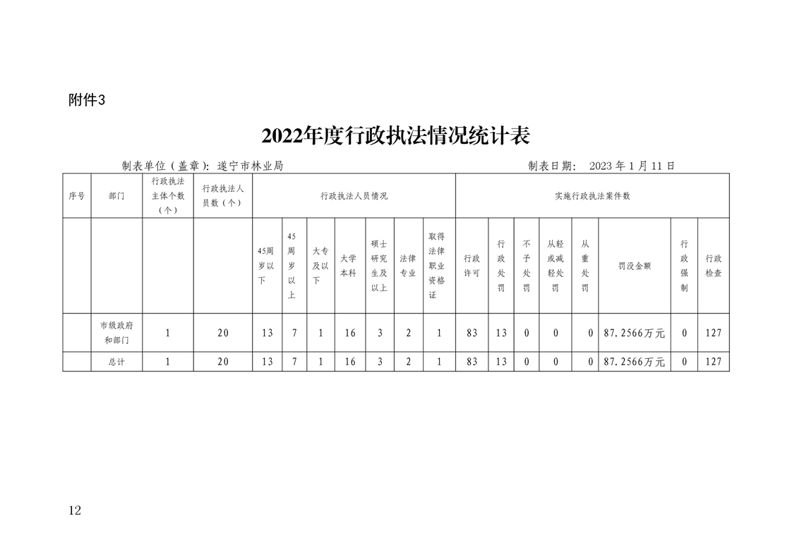 市林业局2022年度行政执法和行政执法监督情况公示备案统计