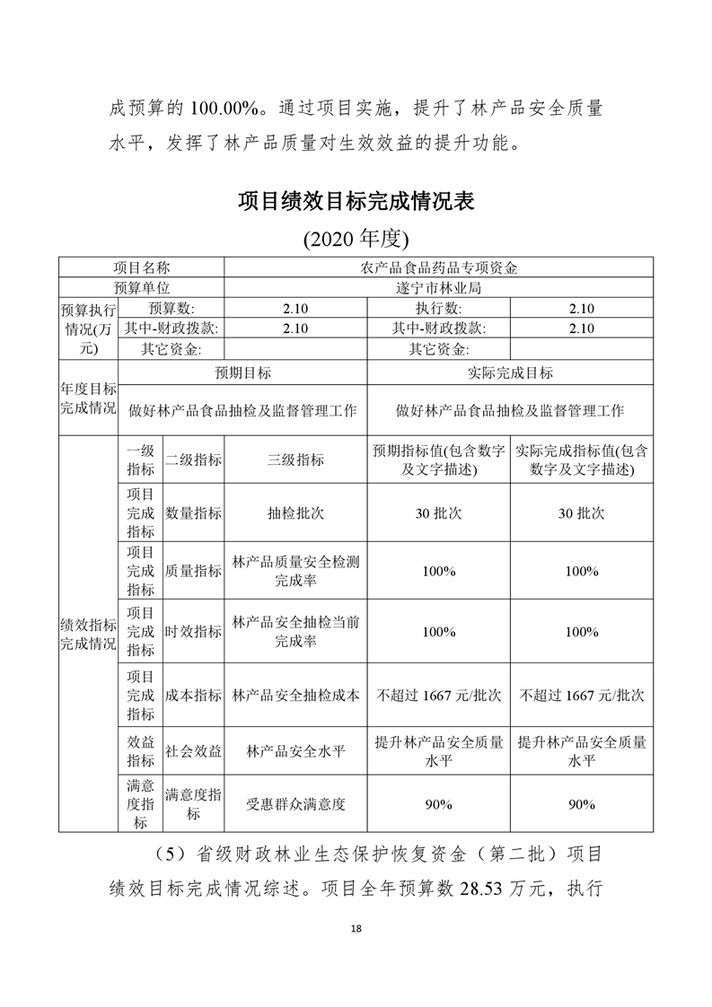 遂宁市林业局2020年度部门决算