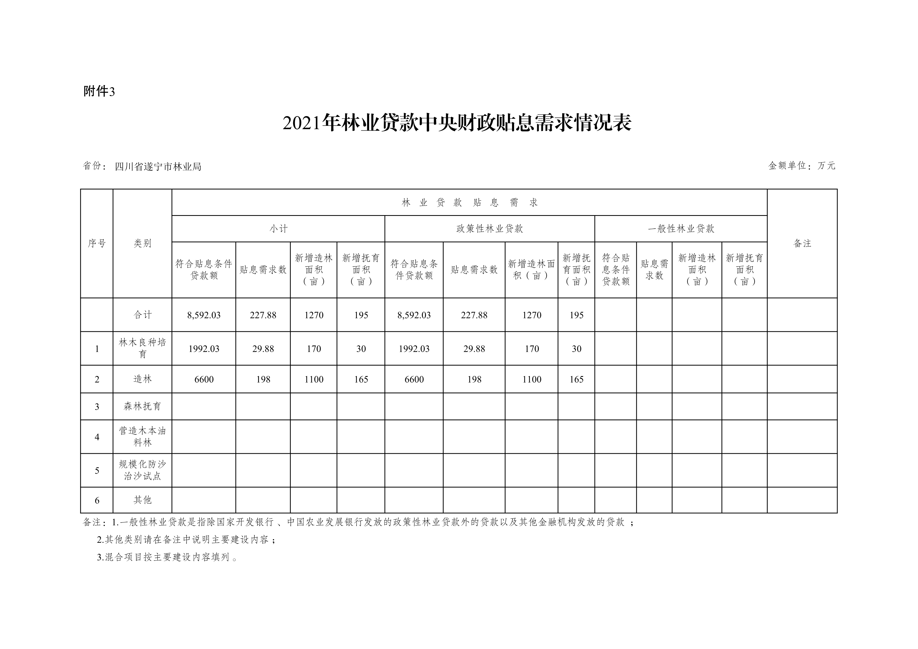 附件:2021年度林业贷款中央财政贴息需求情况表