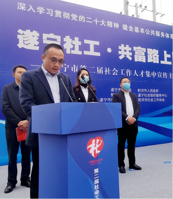 11月23日,遂宁市第二届社会工作人才集中宣传在射洪举行启动仪式。