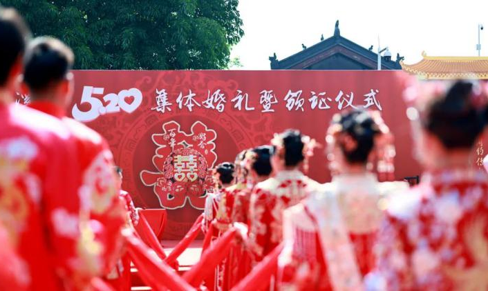 蓬溪县,举办了一场别开生面的 “爱在新时代·简婚传新风”“520”集体婚礼暨颁证仪式,8对新人以简约而不失庄重的中式婚礼共同倡导文明婚俗传递 “重感情、轻形式” 的婚嫁新风尚。