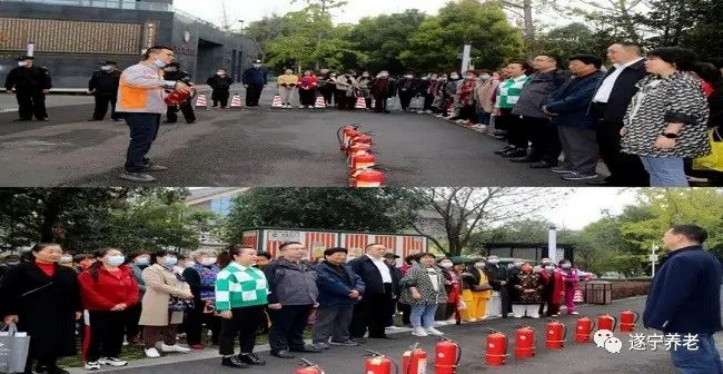 11月9日上午,为贯彻落实习近平总书记“人民至上、生命至上”的安全理念,提高老年学员和干部职工在火灾逃生、自救与互救及突发事件的应变能力,遂宁市老年大学组织教职员工和老年学员开展消防安全知识培训、应急疏散、灭火演练。