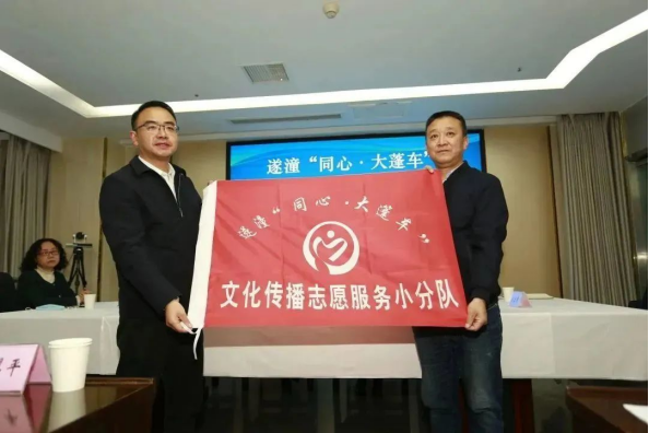 启动仪式上,市侨联主席田碧华宣读了成立遂潼“同心·大篷车”志愿服务队的通知;市委统战部副部长、市侨办主任唐芳,船山区委常委、统战部部长李顺通分别为遂潼“同心·大篷车”志愿服务小分队进行了授旗;发现(遂宁)律师事务所主任崔清代表志愿服务队作了发言。