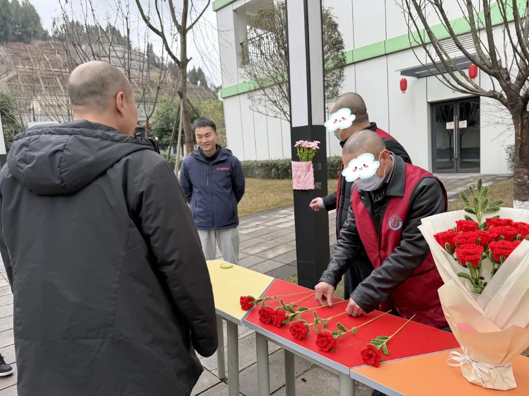 2月14日是情人节,很多人都会在这一天买一束花赠与爱人,表达自己的心意。在遂宁市第六人民医院的院子里,几名精神康复员在医护人员的协助下摆起了“小摊”,摊位上摆满了他们亲手制作的手工作品——玫瑰花。