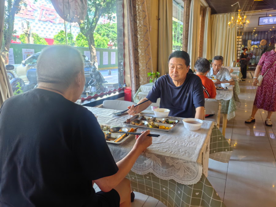 到了饭点,老人们陆续前来就餐,大家聊着家常,一派其乐融融的景象。“这个老年食堂办得非常好,分各种年龄结构补贴,中午两荤两素,每天不同样,味道特别好,减轻了儿女的负担,让我们老年人的晚年很幸福。”射洪市民罗明杰说,老年助餐点解决了很多老年人的吃饭问题,很方便。