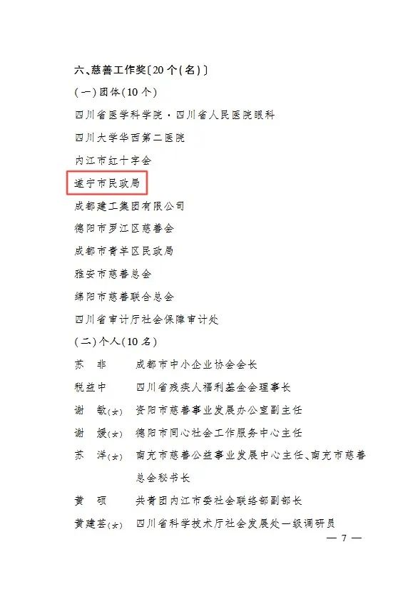 近日,四川省人民政府网站正式公布了第四届“四川省慈善奖”名单!正文如下: