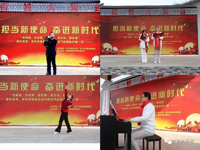 1月17日,遂宁市老年大学、安居区民政局联合开展老年教育、老年志愿服务进海龙村暨“走基层、办实事、促发展、送文化、献温暖”主题活动。市老年大学全体党员,部分教师和学员志愿者参加活动。