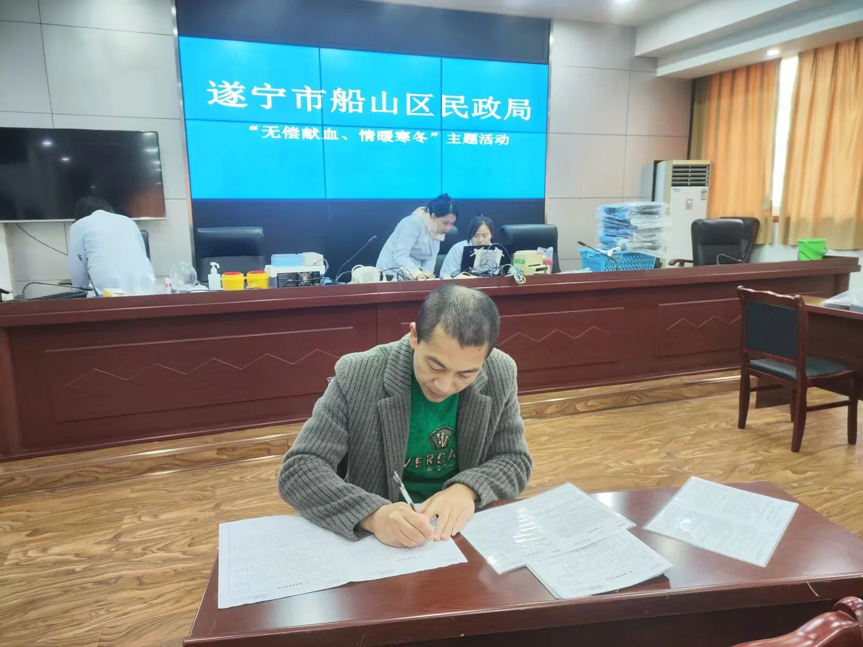 积极响应无偿献血活动号召,切实将人民放在心中最高位置,在局党组的全力支持下,区民政局于 11 月 28 日上午 9 时在五楼会议室成功组织了 “无偿献血、情暖寒冬” 活动。