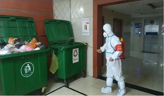 9月23日,王传忠同志所住的金海国际3栋因有阳性病例成为了第一批纳入封控管理的楼栋,他毫不畏惧,主动向社区报到,就地转为志愿者,每天除了清理楼栋垃圾、参与蔬菜配送外,还要背着30多斤的消毒箱步行33层为每一层楼做2次消杀工作,每天2500多个台阶3个多小时的消杀工作结束,隔离服都能拧出水来。他说这既服务大家,还能锻炼身体,希望自己的身体力行能为打赢疫情防控阻击战、歼灭战贡献绵薄之力。