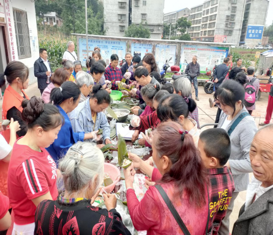 粽子飘香艾草芳,龙舟争渡闹春江。为发挥传统节日思想熏陶和文化教育功能,营造文明健康的邻里氛围,助力乡村文化振兴,6月16日上午,在龙凤镇党委政府的大力支持下,遂宁嘉善社会工作服务社在寨子村成功开展了“爱在复兴”公益集市“粽叶飘香·浓情端午”主题活动。龙凤镇人民政府副镇长谭春艳、组织委员王利丝、便民服务中心主任魏郁臻、退休老干部代表、在村群众等100余人参加。
