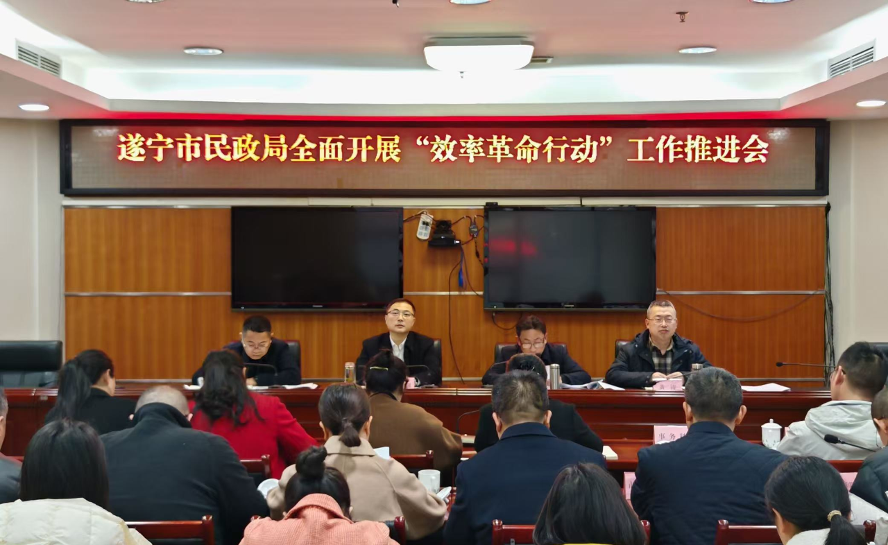 3月7日下午,遂宁市民政局召开全面开展“效率革命行动”工作推进会,深入贯彻落实市委“效率革命行动”决策部署,高标准、高质量推进市民政局“效率革命行动”,在全市民政系统掀起一轮刀刃向内、抓铁有痕、雷厉风行、真抓实干的热潮,开展一场效率大比拼、接力大赛跑,以此次“革命”为契机,扛起责任、冲锋在前、大干一场,加快推动民政事业高质量跨越式发展。