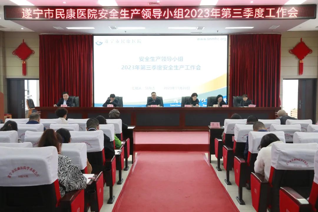 11月20日下午,遂宁市第六人民医院第三季度安全生产工作会议召开,总结分析当前安全生产形势,安排部署近期安全生产工作。市第六人民医院院长聂红,院党总支副书记廖晓华,副院长黎智、王静、黎阳,院工会主席马丛芳,中层及以上干部、各科室安全管理员等参加会议。