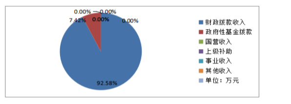 2024年度本年收入合计404.39万元,其中:一般公共预算财政拨款收入374.39万元,占92.58%;政府性基金预算财政拨款收入30万元,占7.42%;国有资本经营预算财政拨款收入0万元,占0%;上级补助收入0万元,占0%;事业收入0万元,占0%;经营收入0万元,占0%;附属单位上缴收入0万元,占0%;其他收入0万元,占0%。