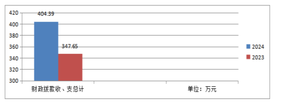 2024年度财政拨款收入、支出总计均为404.39万元。与2023年度相比,财政拨款收入总计、支出总计各增加56.75万元,增长16.32%。变动原因是本年增加殡仪馆运行经费。