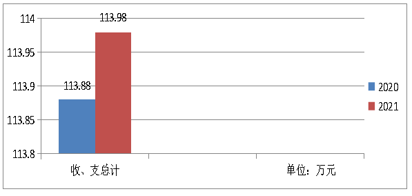 2021年度收、支总计113.98万元。与2020年相比,收、支总计各增加0.1万元,增长0.09%。主要变动原因是基本工资上涨,保险基数调整,保险类支出增加。