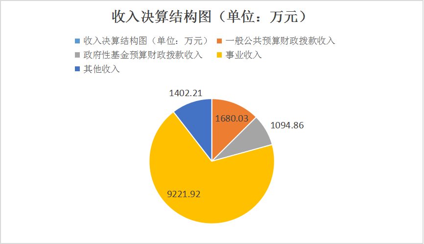 2024年度本年收入合计13399.02万元,其中:一般公共预算财政拨款收入1680.03万元,占12.54%%;政府性基金预算财政拨款收入1094.86万元,占8.17%;事业收入9221.92万元,占68.83%;其他收入1402.21万元,占10.47%。