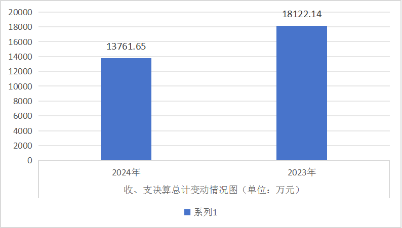 2024年度收、支年初预算安排总计均为13761.65万元。与2023年度18122.14万元相比,收、支总计各减少4360.49万元,下降24.06%。主要变动原因是遂宁市民康医院综合大楼和老年养护院专项债预算减少,后勤保障和医院运行项目预算减少。