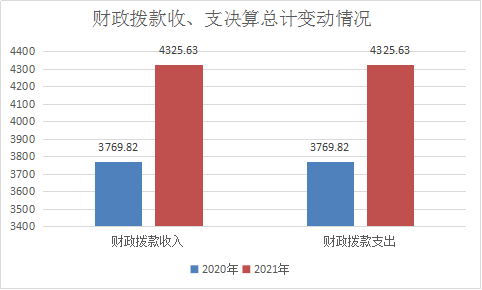 2021年财政拨款收、支总计4325.63万元。与2020年相比,财政拨款收、支总计各增加555.81万元,增长14.74%。主要变动原因是遂宁市民康医院二期基建项目的开展,用于保障民生工程。