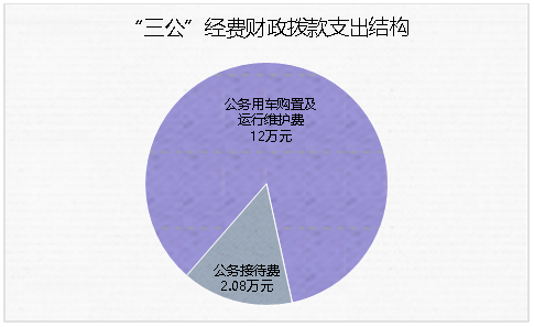 2023年度“三公”经费财政拨款支出决算中,因公出国(境)费支出决算0万元,占0%;公务用车购置及运行维护费支出决算12万元,占85.23%;公务接待费支出决算2.08万元,占14.77%。具体情况如下: