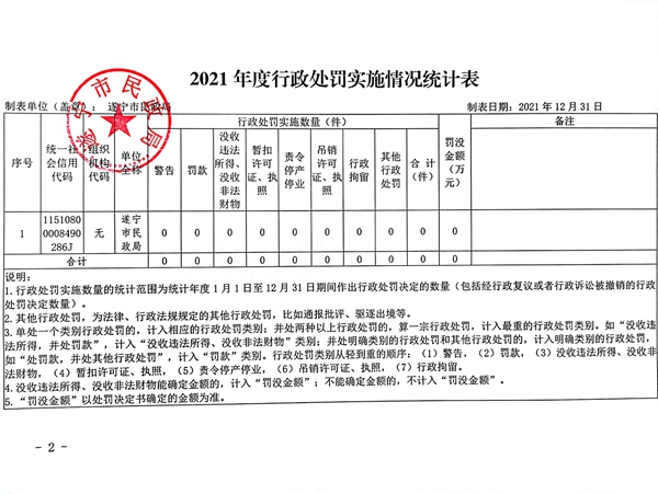 2021年度行政处罚实施情况统计表