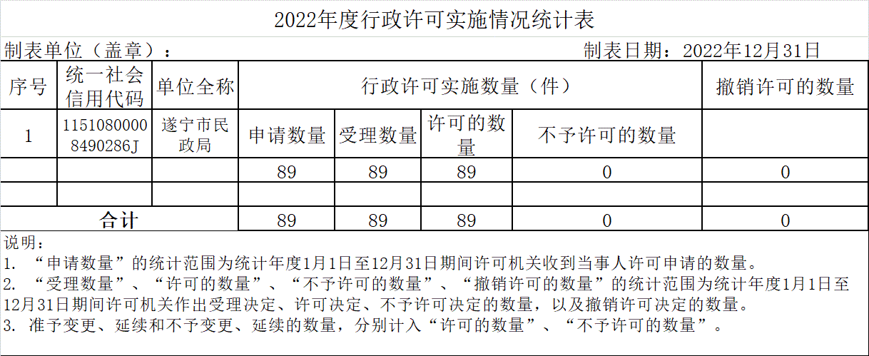 2022年度行政许可实施情况统计表