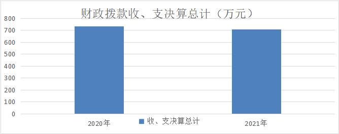 2021年度收、支总计705.26万元。与2020年相比,收、支总计各减少24.88万元,下降3.4%。主要变动原因一是较2020年相比年初结转结余数较少;二是人员结构调整。