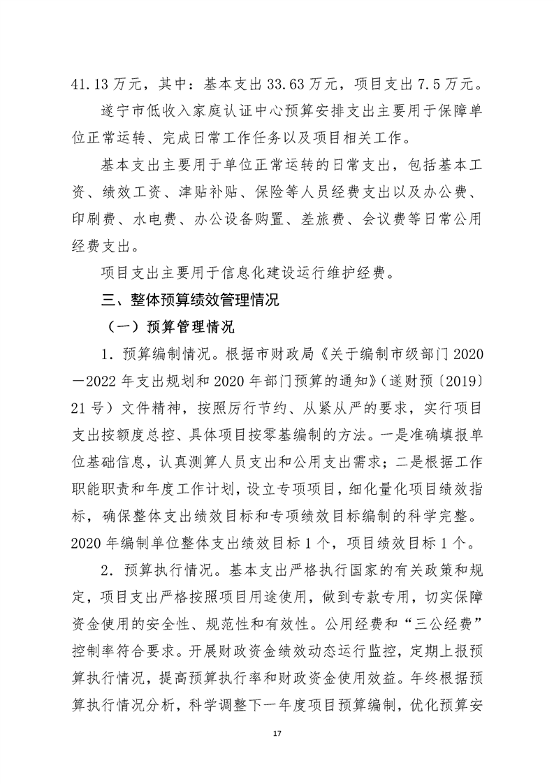 2020年度四川省遂宁市低收入家庭认证中心部门决算