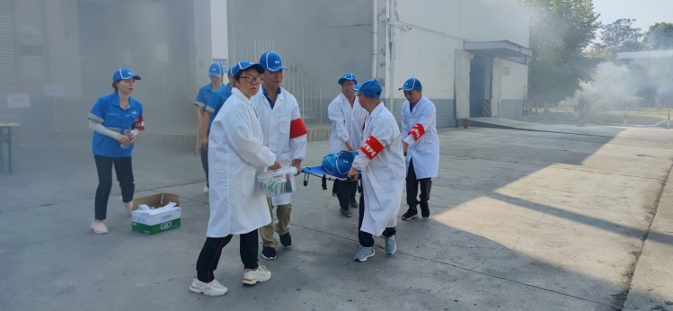 在消防应急演练过程中,演练现场模拟了包材库房工作人员在进行动火作业时,因疏忽大意导致纸箱起火发生火灾的情况。同时模拟了现场失火后,库房管理人员立即报警并上报公司领导,公司立即启动应急预案,在总指挥的安排下,抢险救援组、警戒疏散组、医疗救护组、后勤保障组、事故调查组根据自身应急分工,科学有序地开展应急处置工作,整个演练过程,各组分工明确,行动忙而不乱,顺利完成了本次消防应急演练活动。