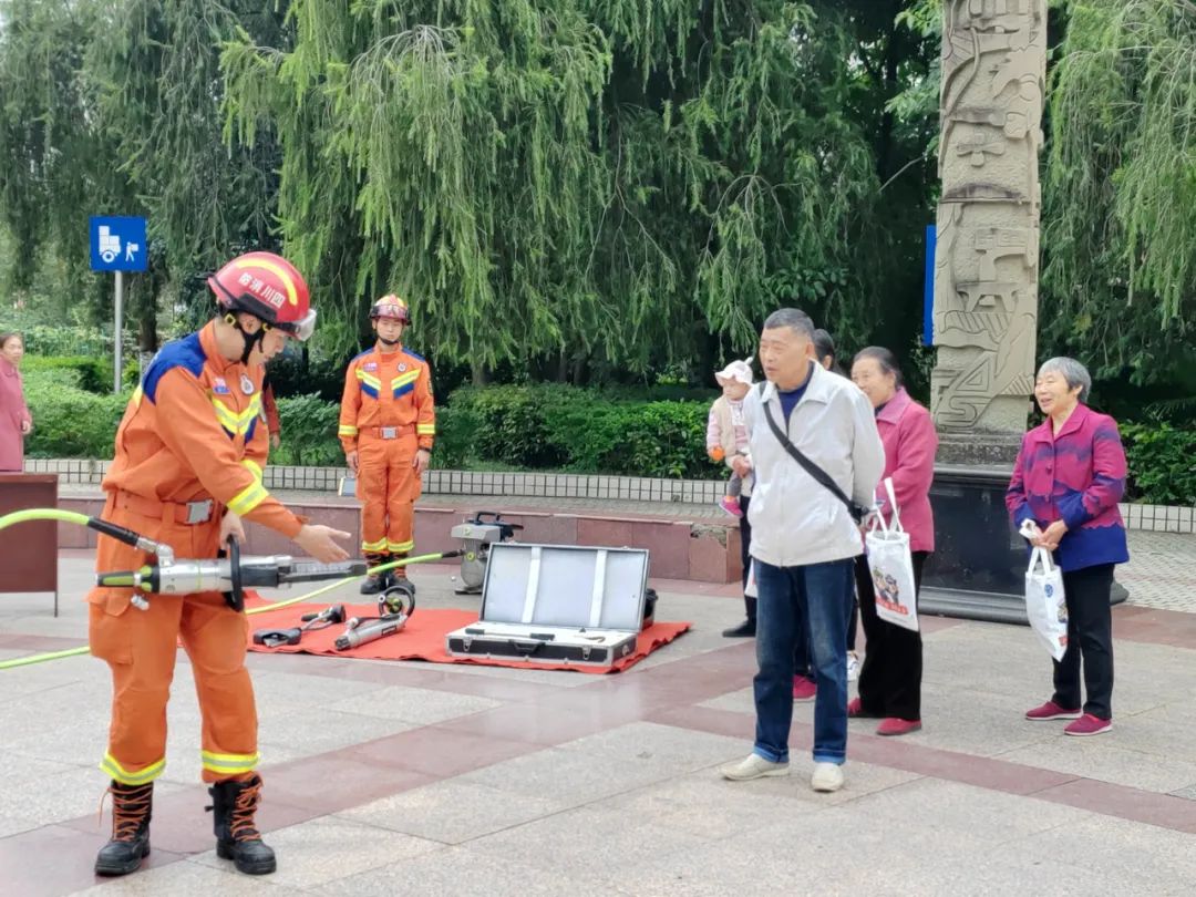 活动现场,区消防救援大队的消防员们还为大家演示了液压泵、液压扩张钳等抢险救援装备器材,讲解其用途和使用方法,让群众沉浸式学习相关消防知识。