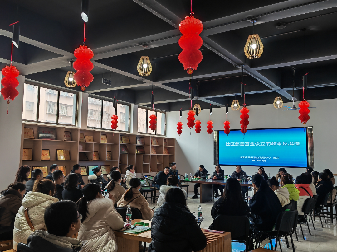 为加快社会慈善资源整合,优化“五社联动”机制,扎实推进“慈善经开”创建。近日,区劳保局组织辖区7个镇(街道)民政办主任、18个社区书记和社工专岗人员共30余人到河东新区灵应寺社区开展遂宁经开区社区慈善基金设立现场培训活动。