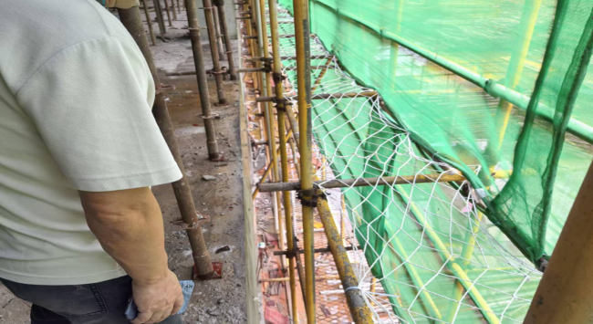 整改要求:按要求对3号楼设置脚手架与结构外表面之间贯通采取水平兜网防护措施。