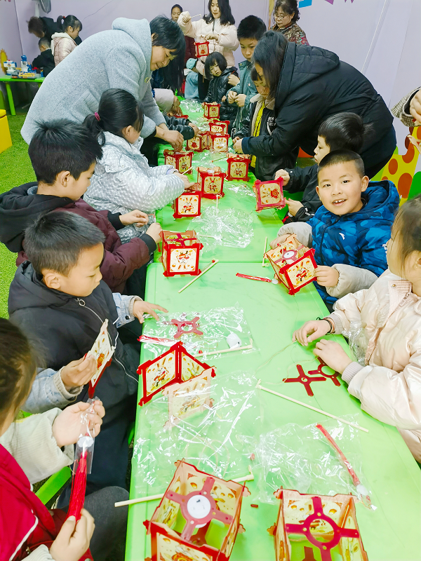 连接、固定、穿线……志愿者详细讲解制作灯笼的方法,现场大人、小孩齐动手按照步骤认真地操作起来,忙的不亦乐乎,不一会儿,一盏盏象征着幸福吉祥的灯笼就呈现在眼前,活动现场一片热闹、温馨、其乐融融的景象,最后孩子们高兴地展示出自己的作品,纷纷表示这次活动非常有趣。