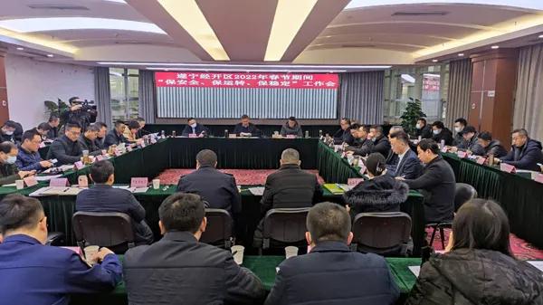 1月24日,遂宁经开区召开2022年春节期间“保安全、保运转、保稳定”工作会。区党工委副书记、管委会主任熊杰及全体在家委领导参加会议。