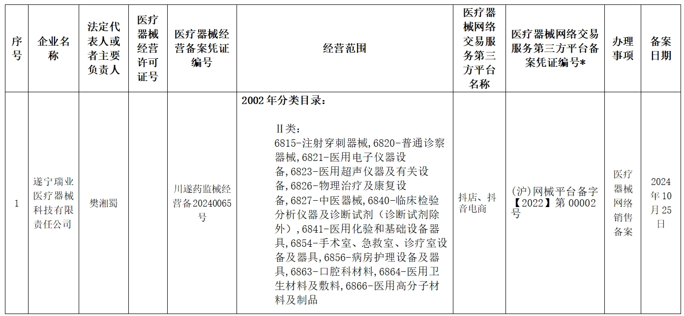 医疗器械网络经营企业备案信息公告 (入驻类 2024年第4期)