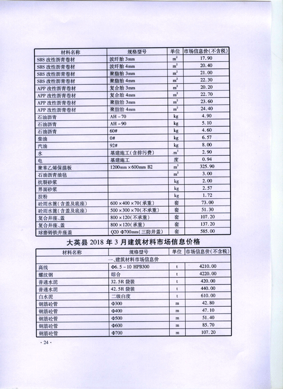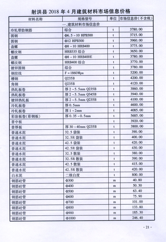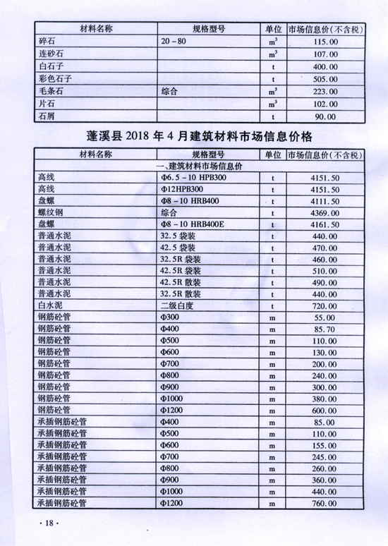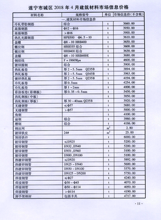 2018年4月建材价格