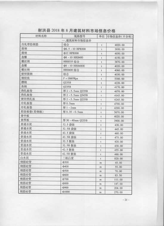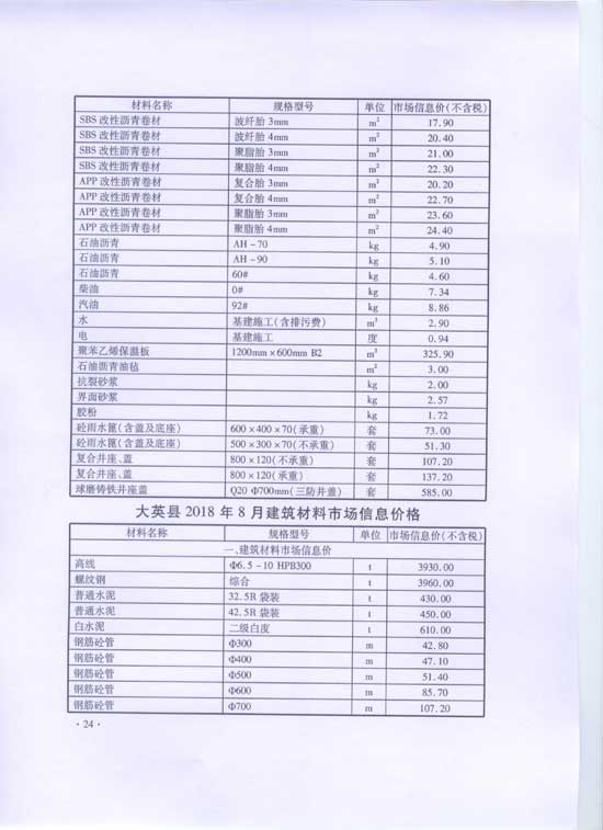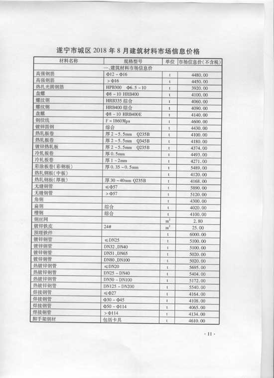 2018年8月建材价格