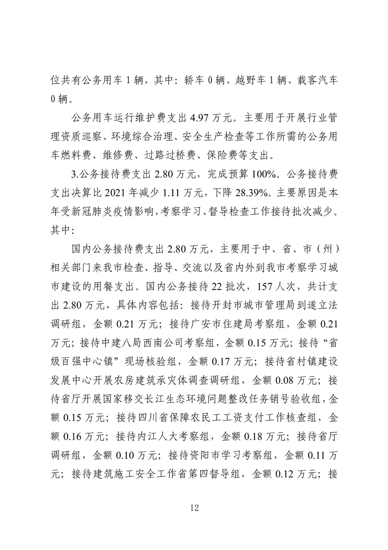 遂宁市住房和城乡建设局(本级)2022年单位决算编制说明