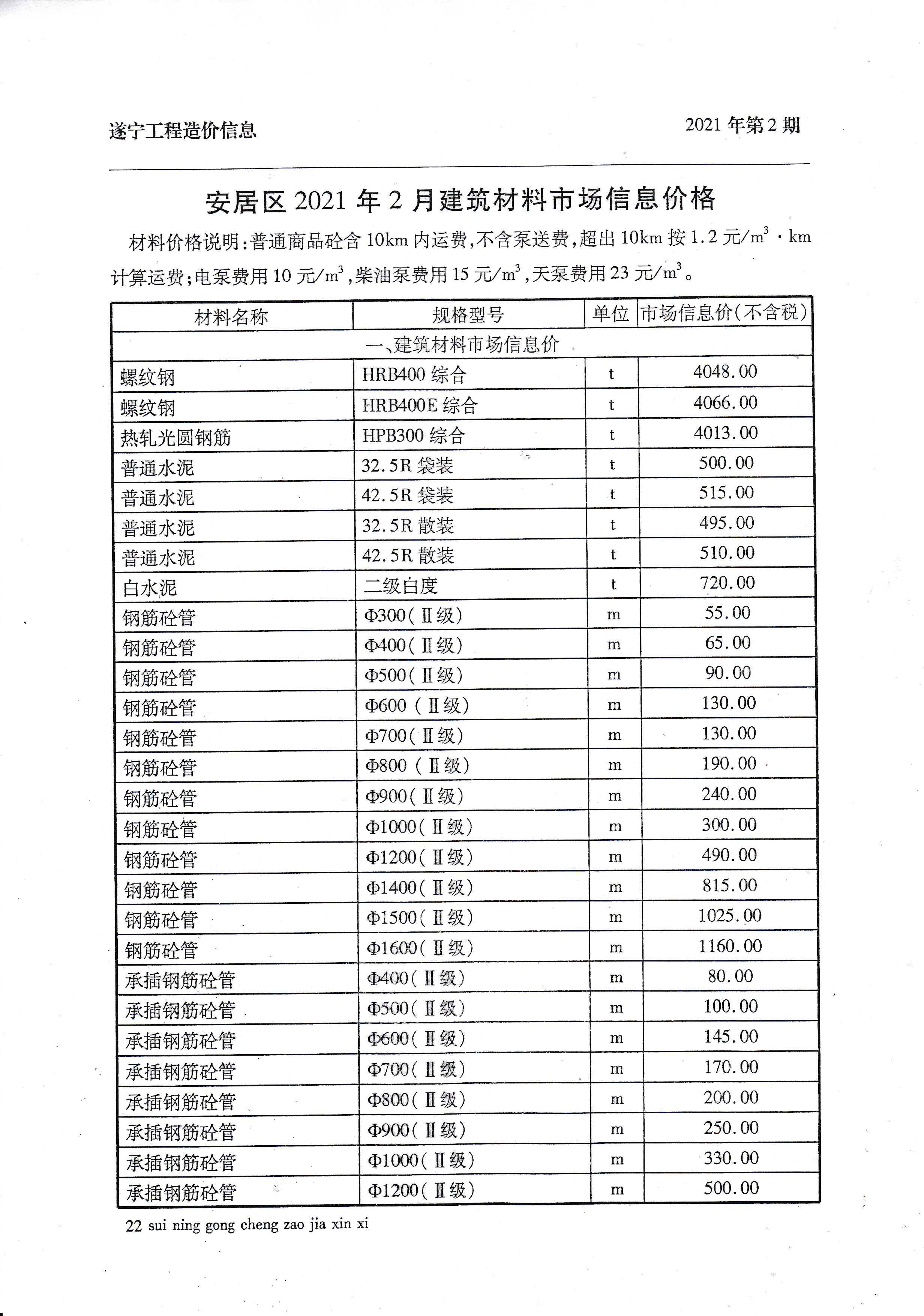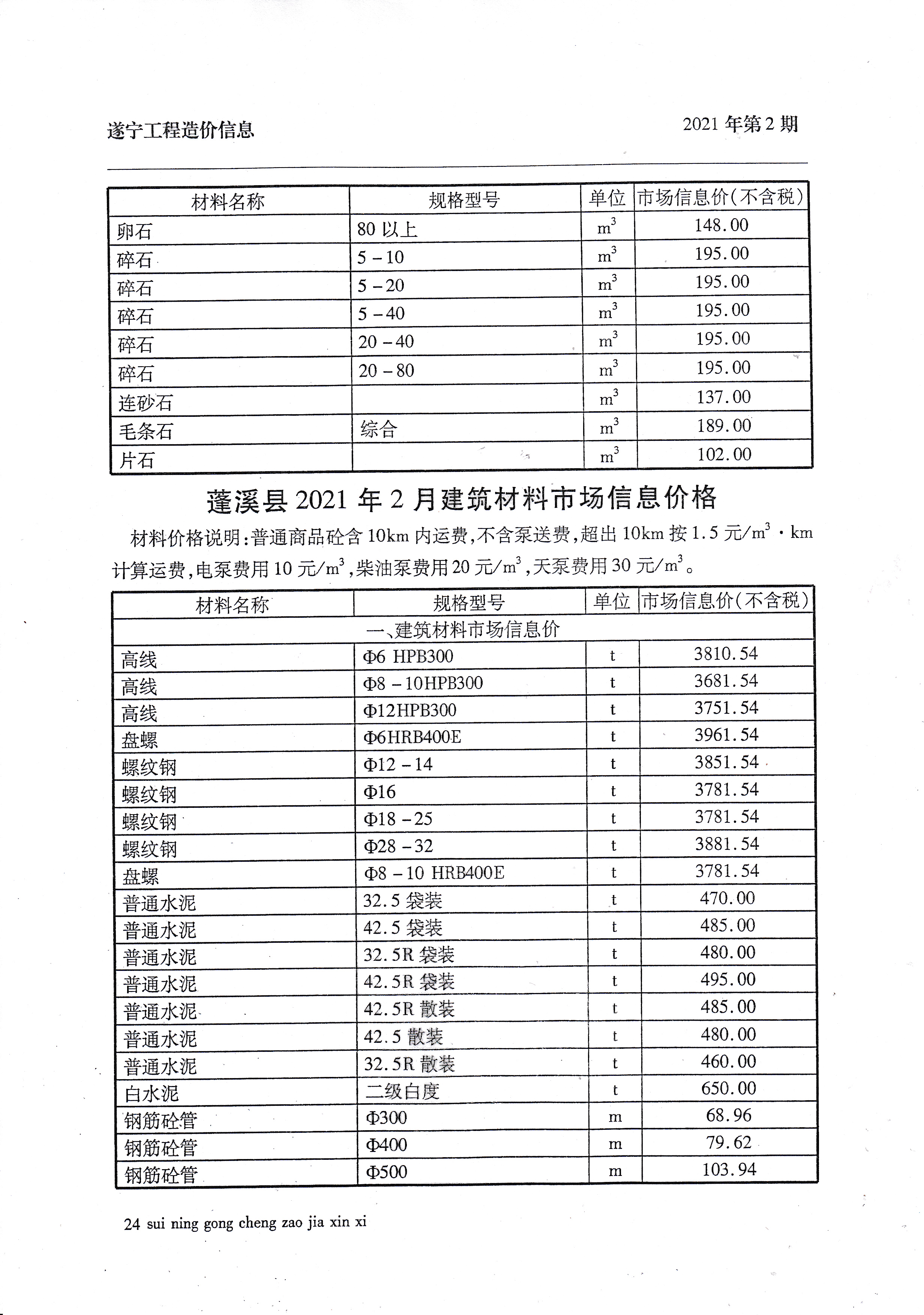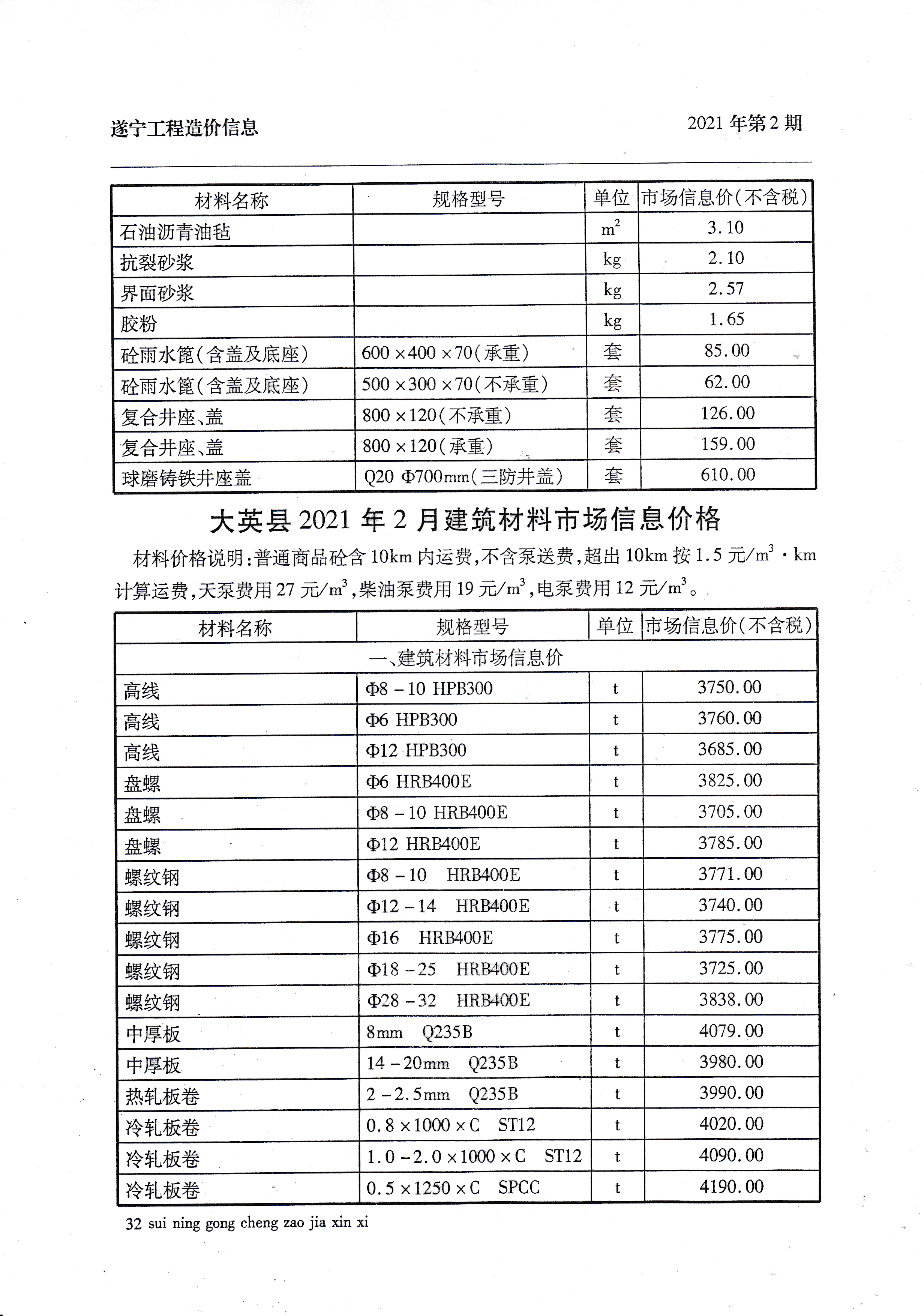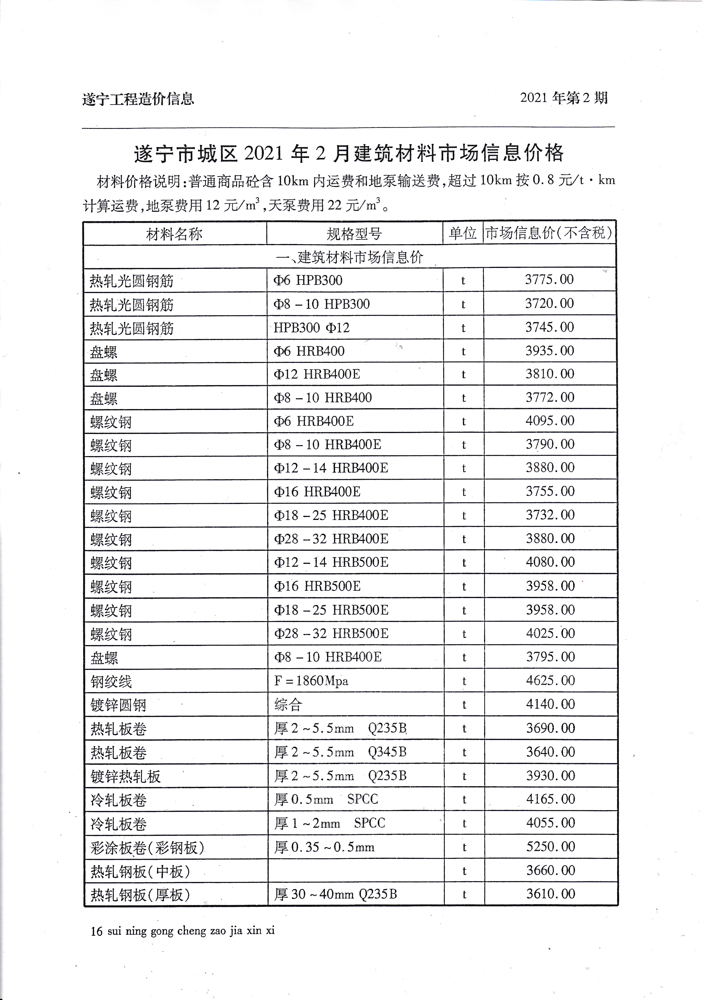 2021年2月建材价格