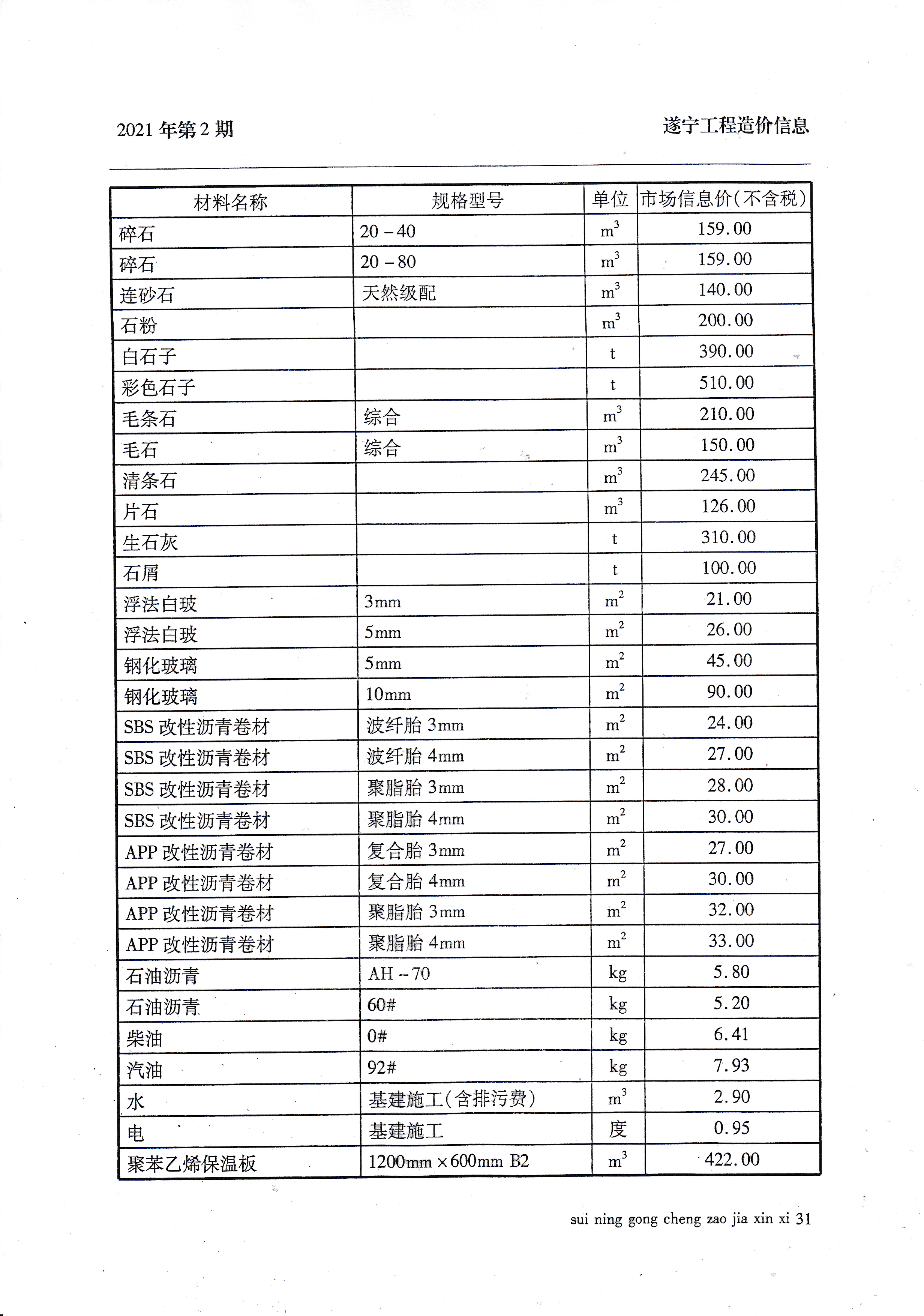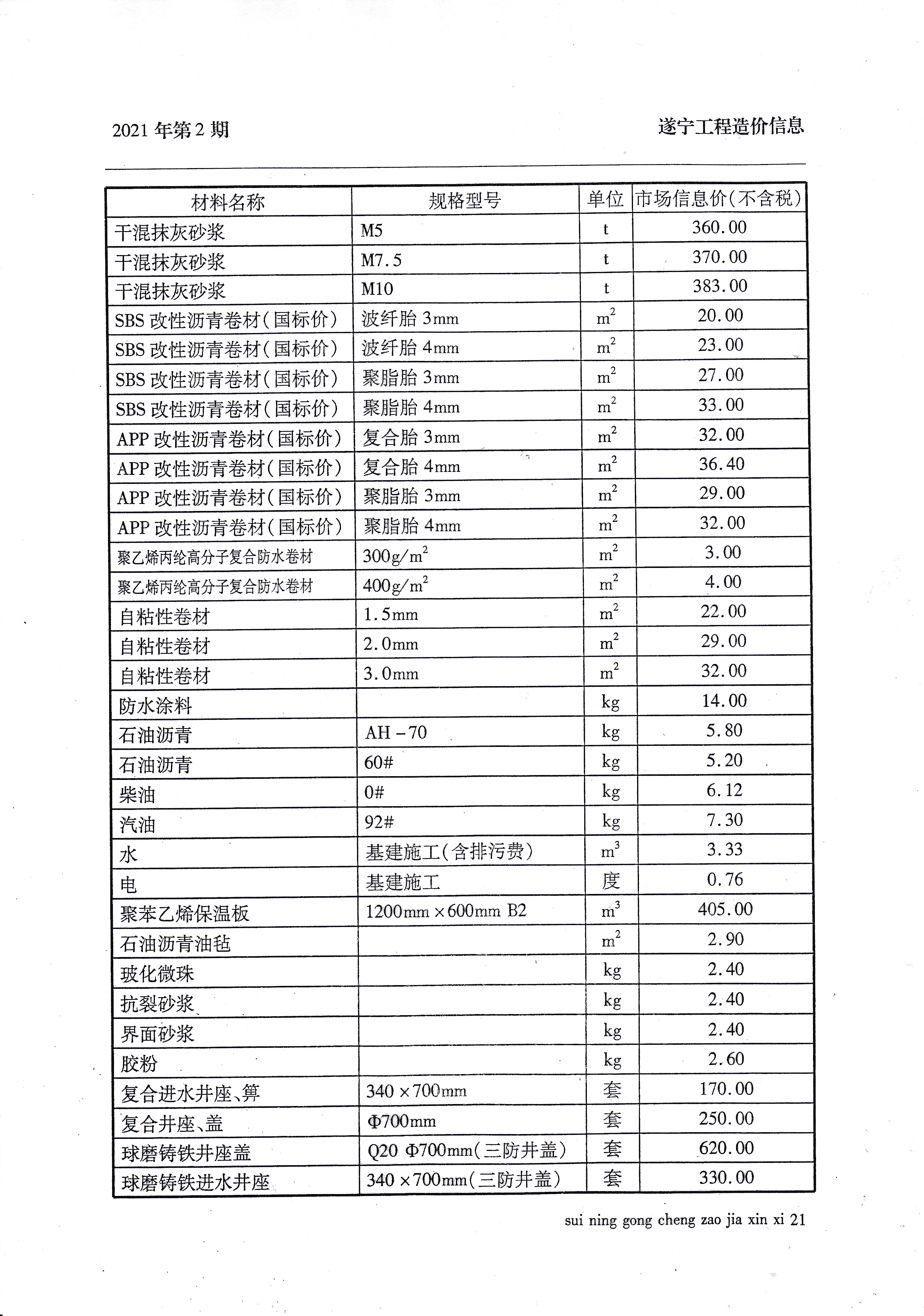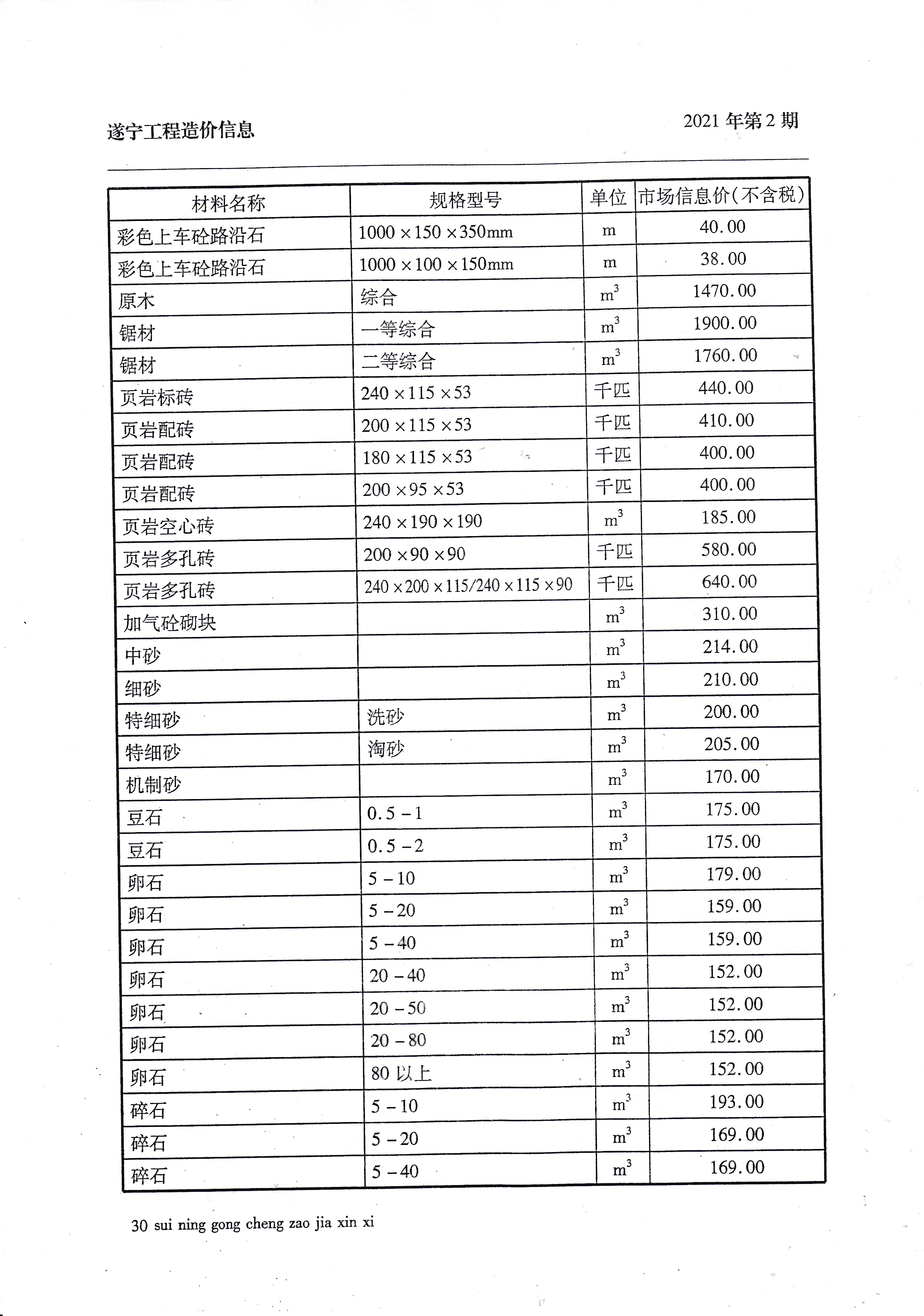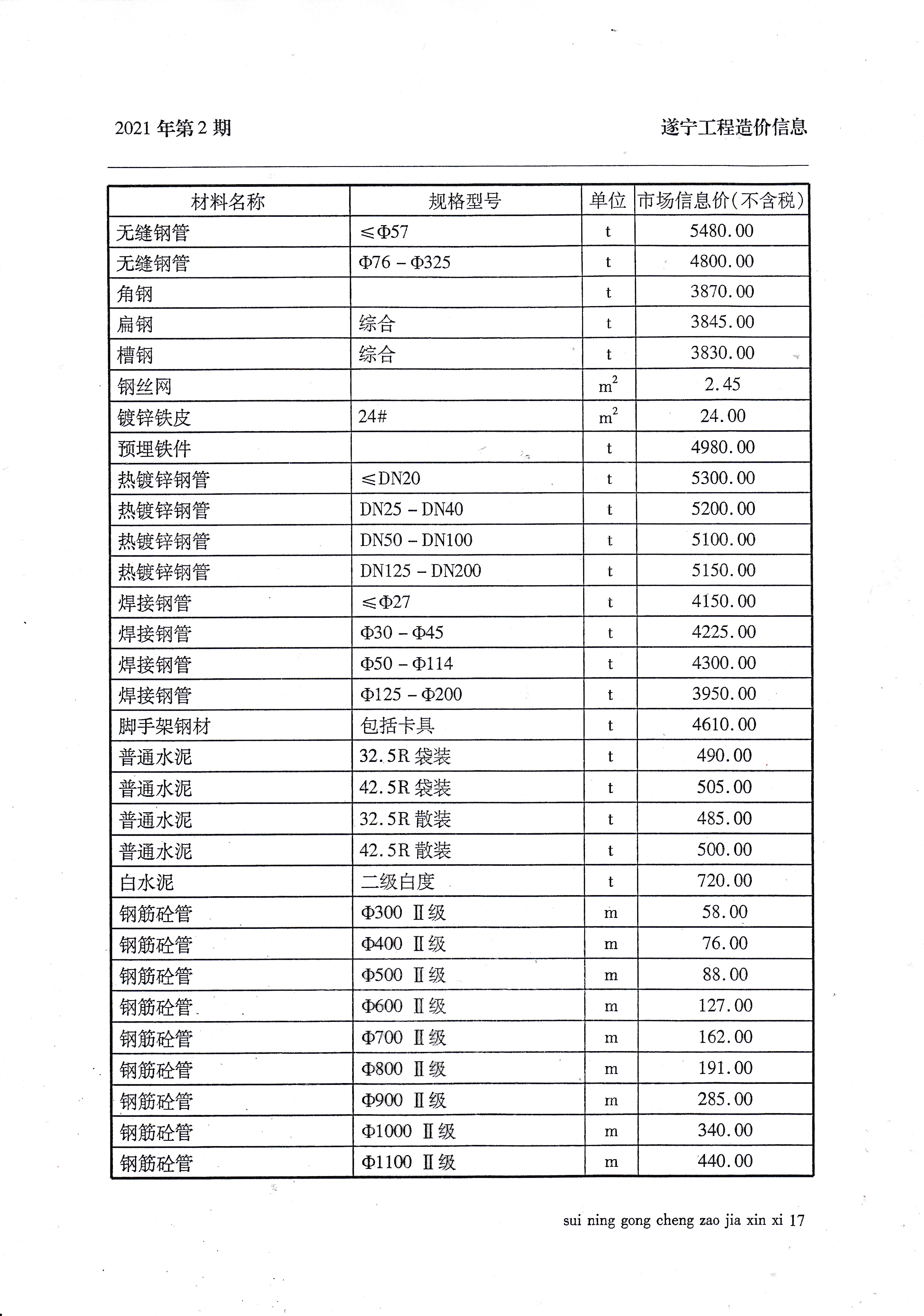 2021年2月建材价格