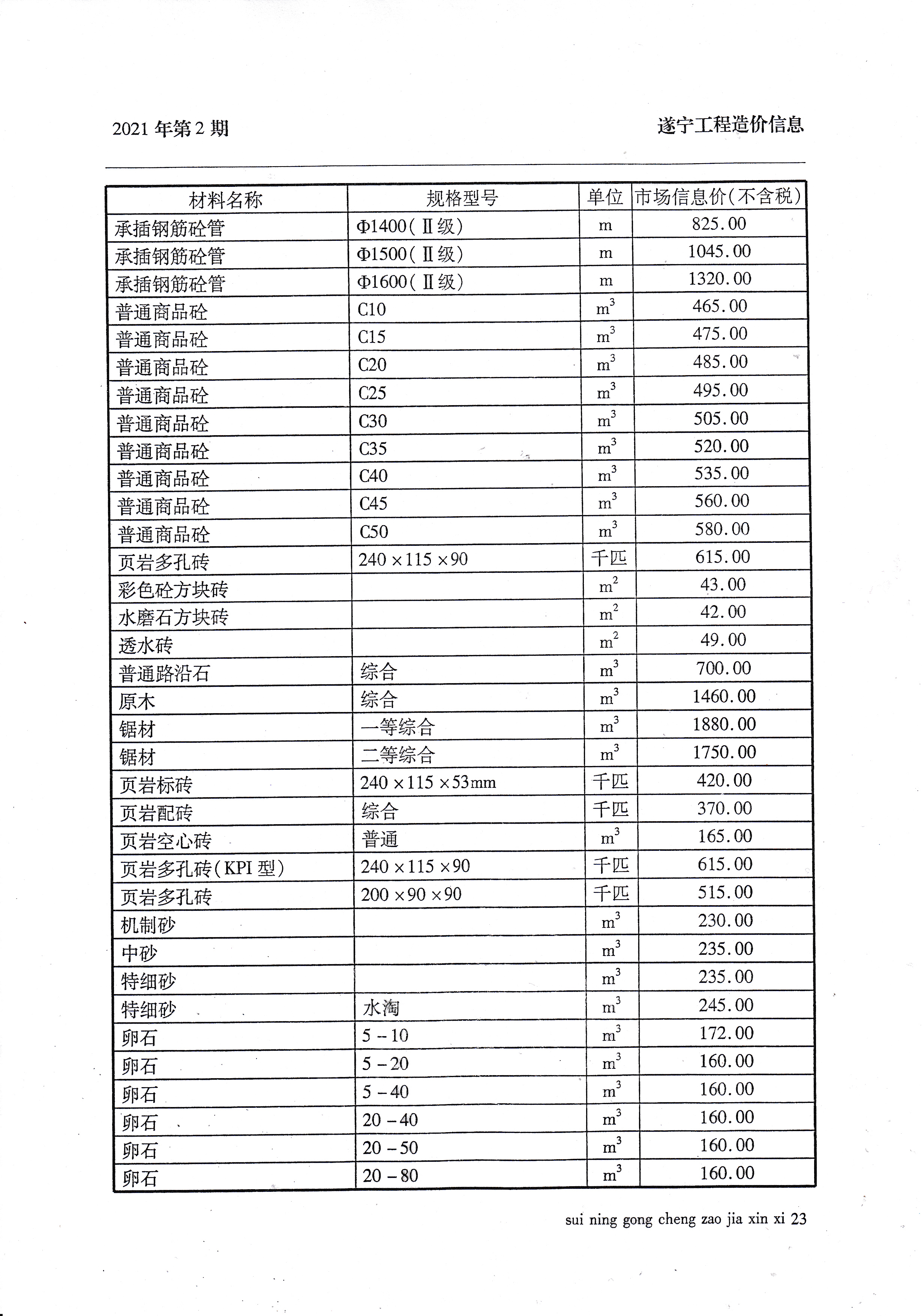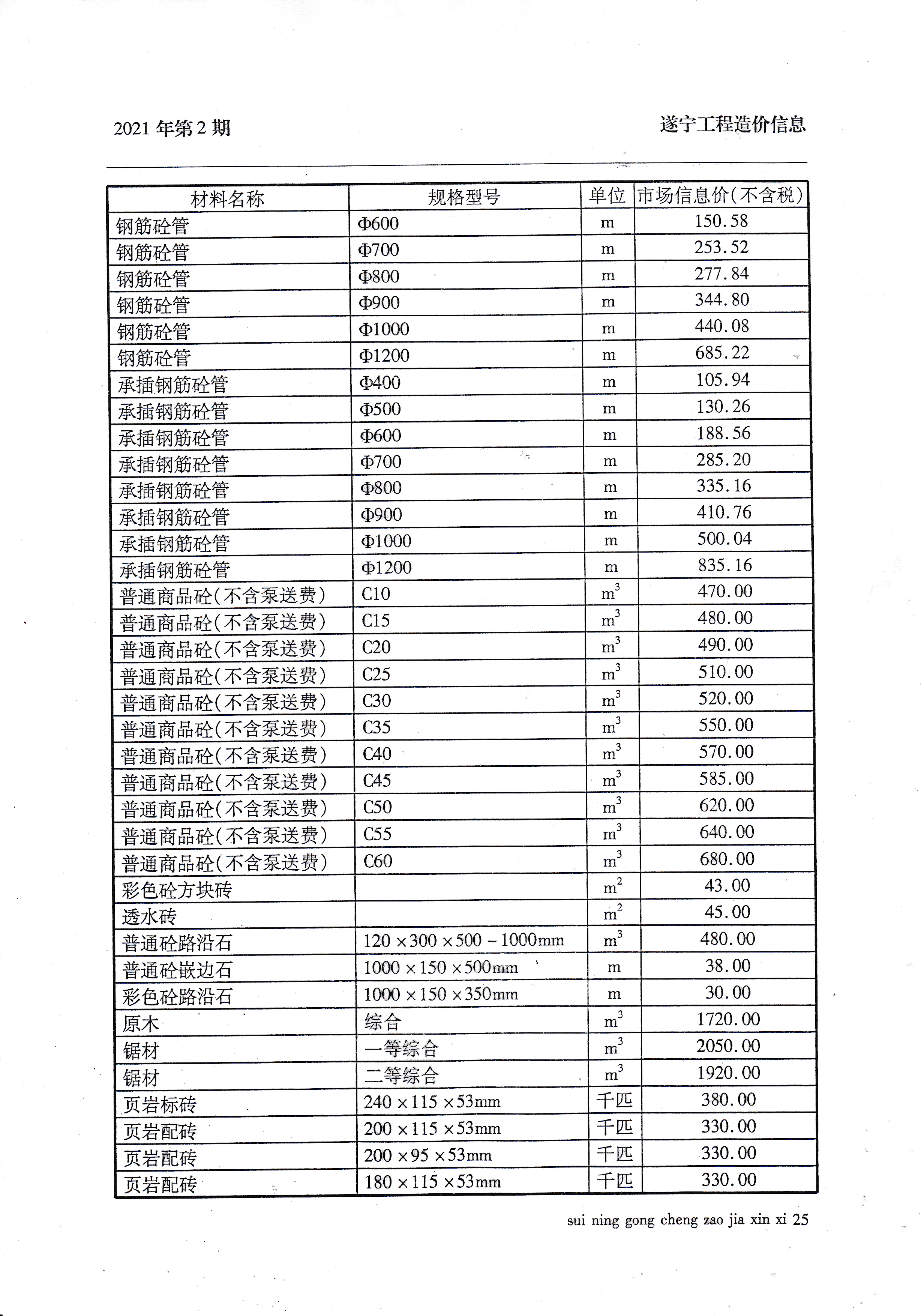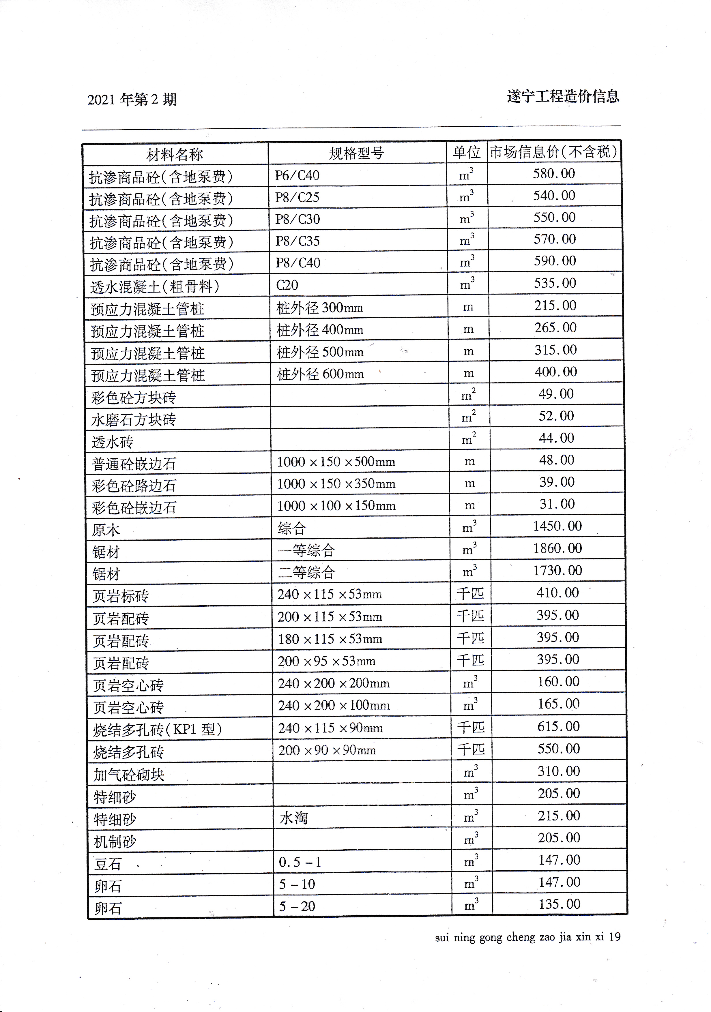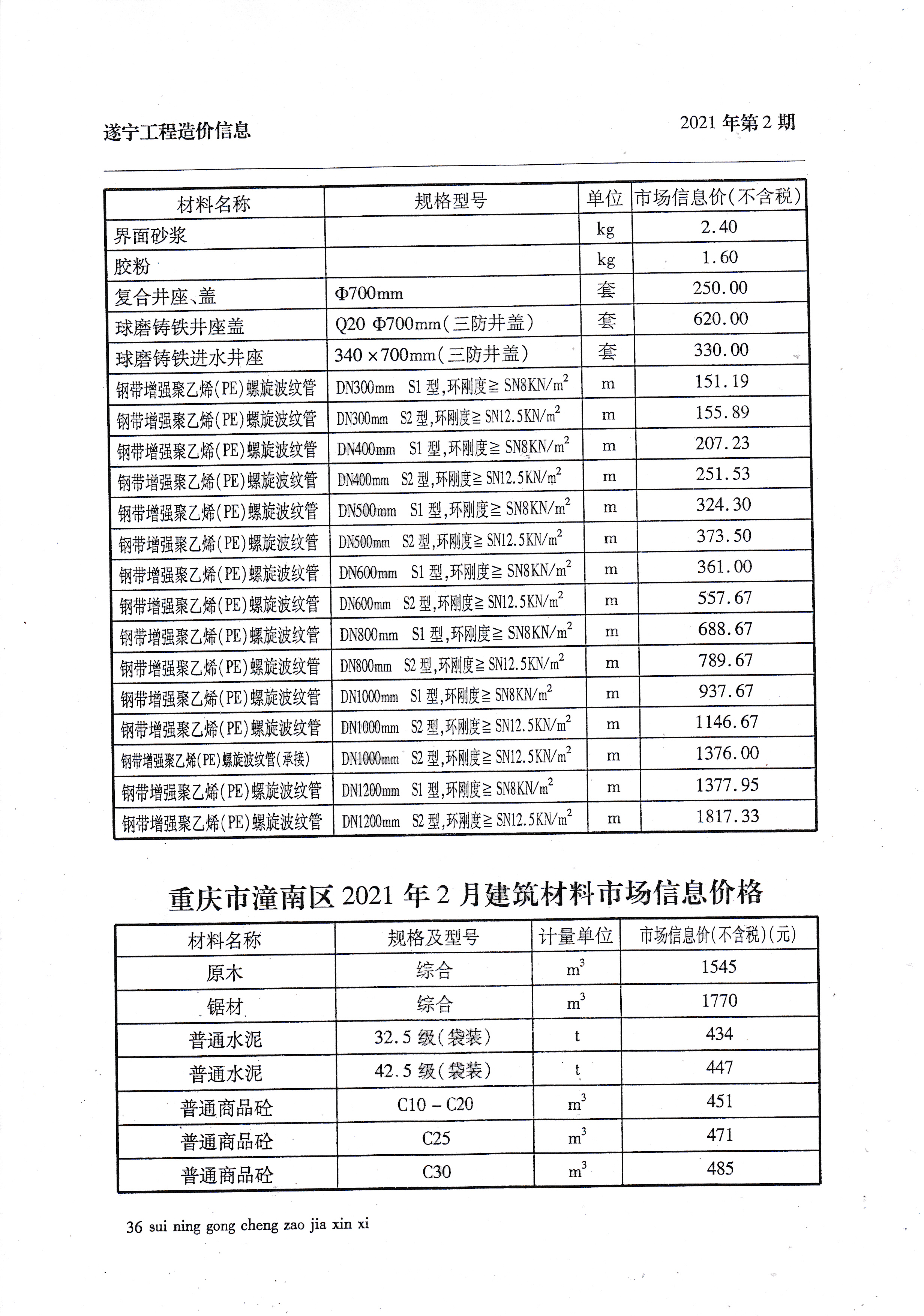 2021年2月建材价格