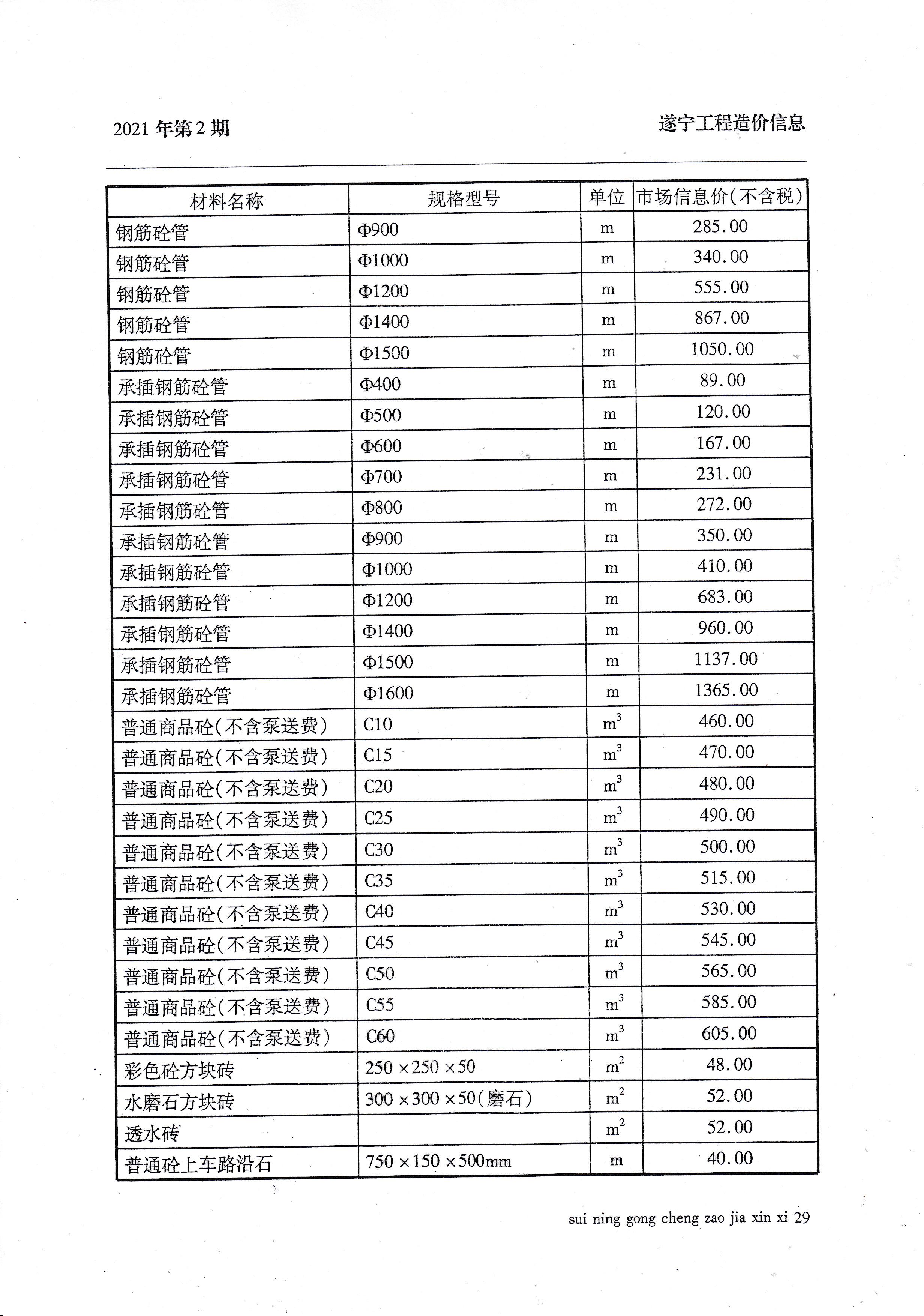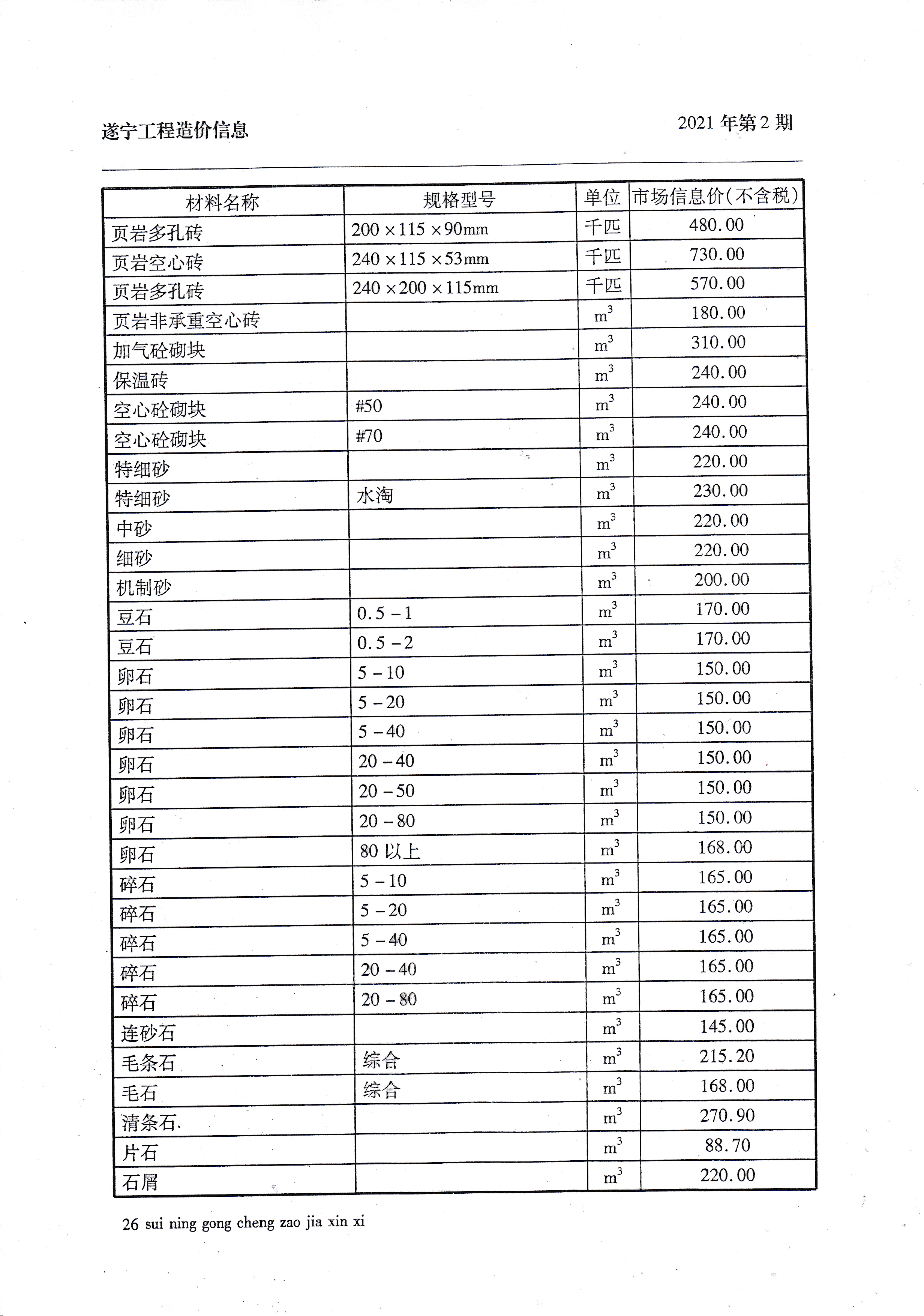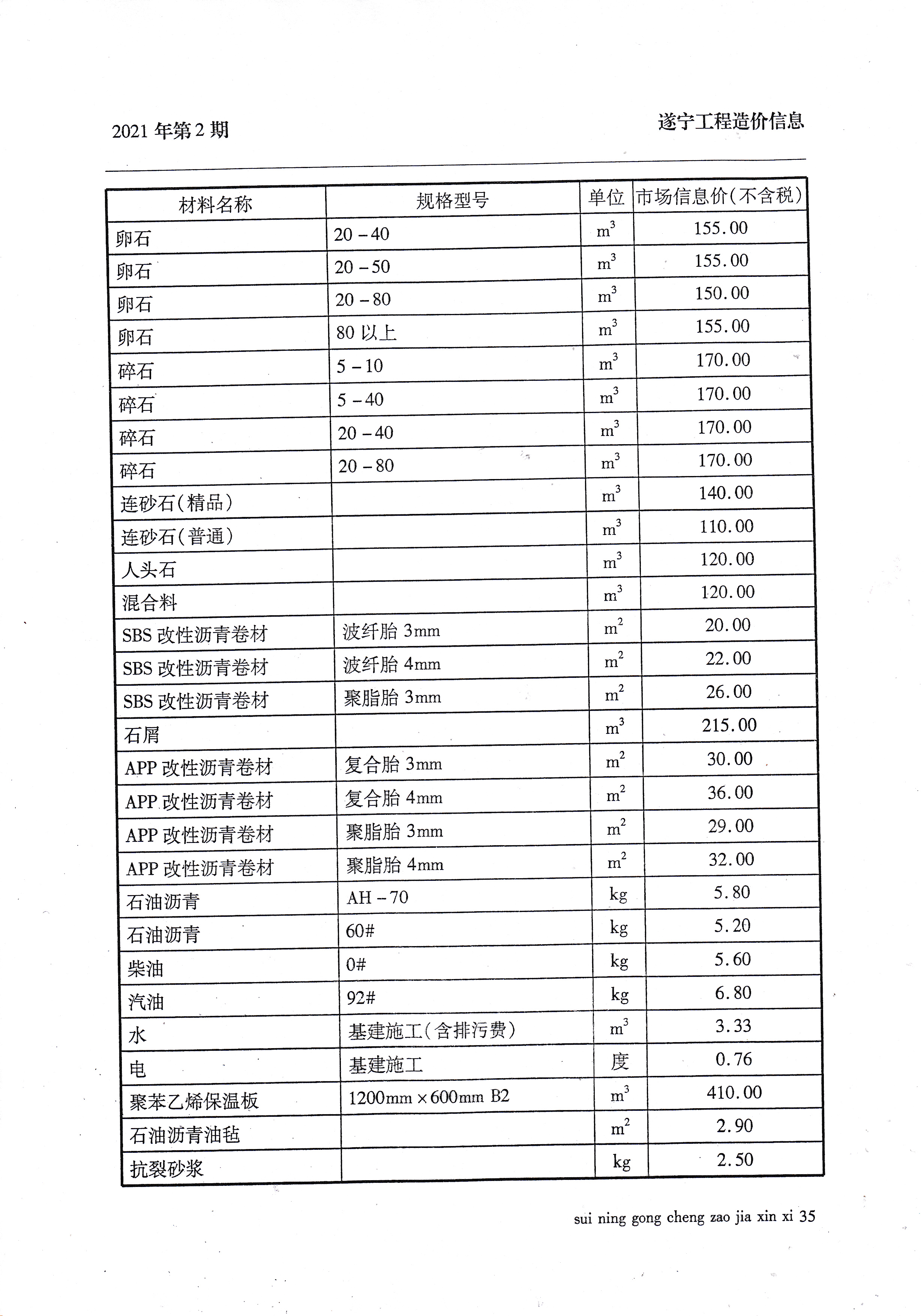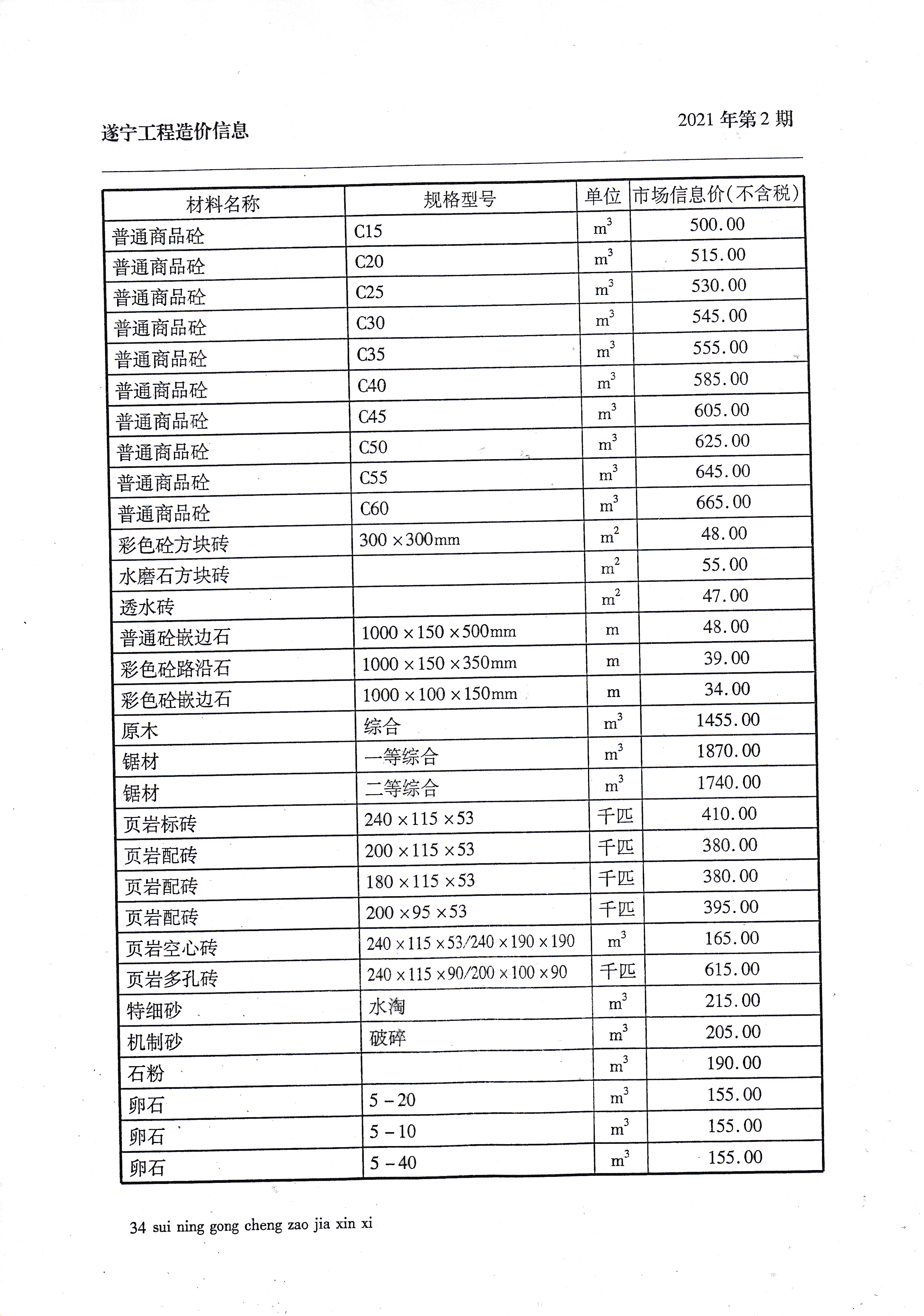 2021年2月建材价格